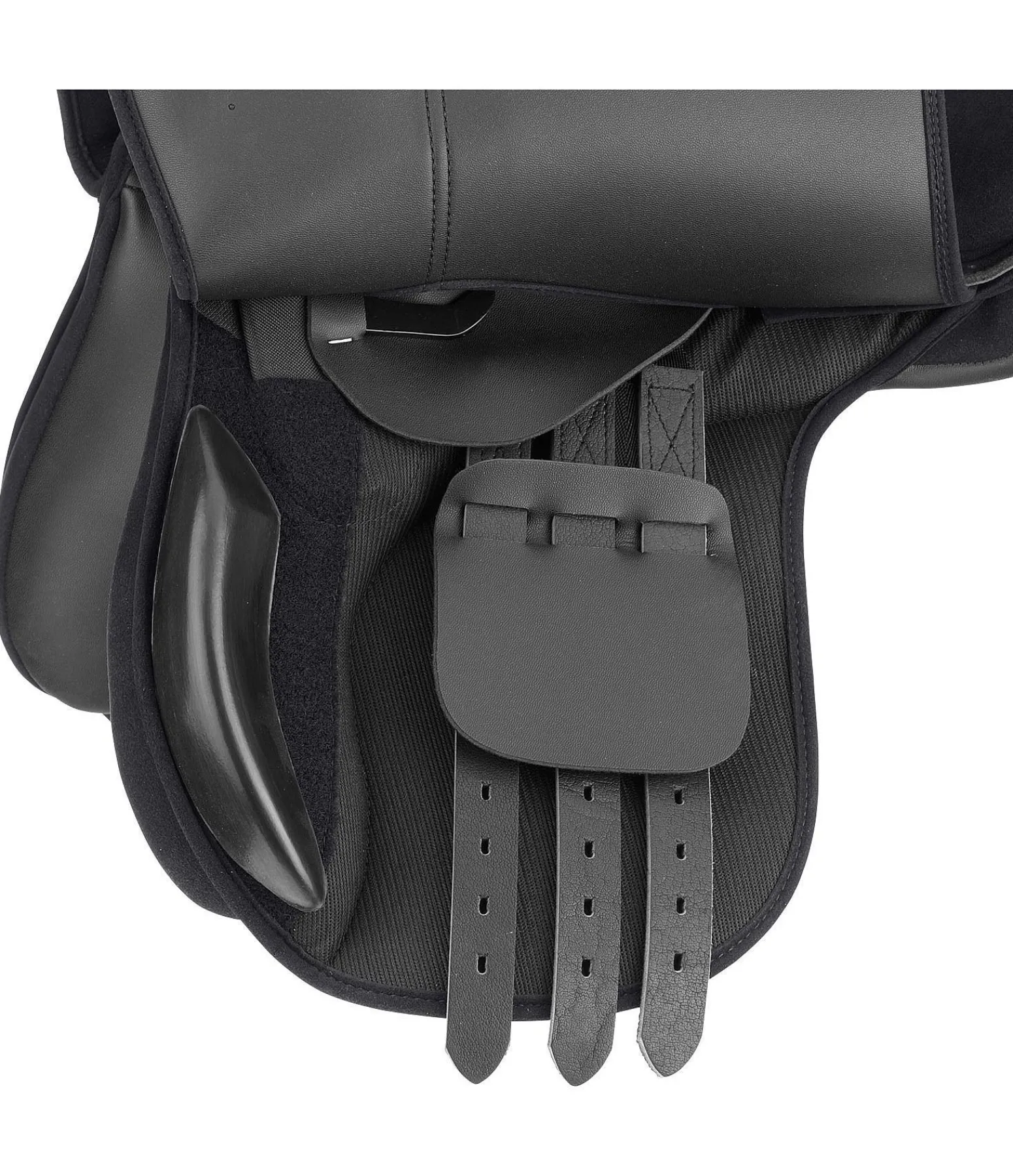 Selle poney SYLKA en matière synthétique. Cette selle mixte peut être utilisée aussi bien pour le dressage que pour le concours complet. Arcade interchangeable. Livrée avec l’arcade noire (normal, 30 cm).