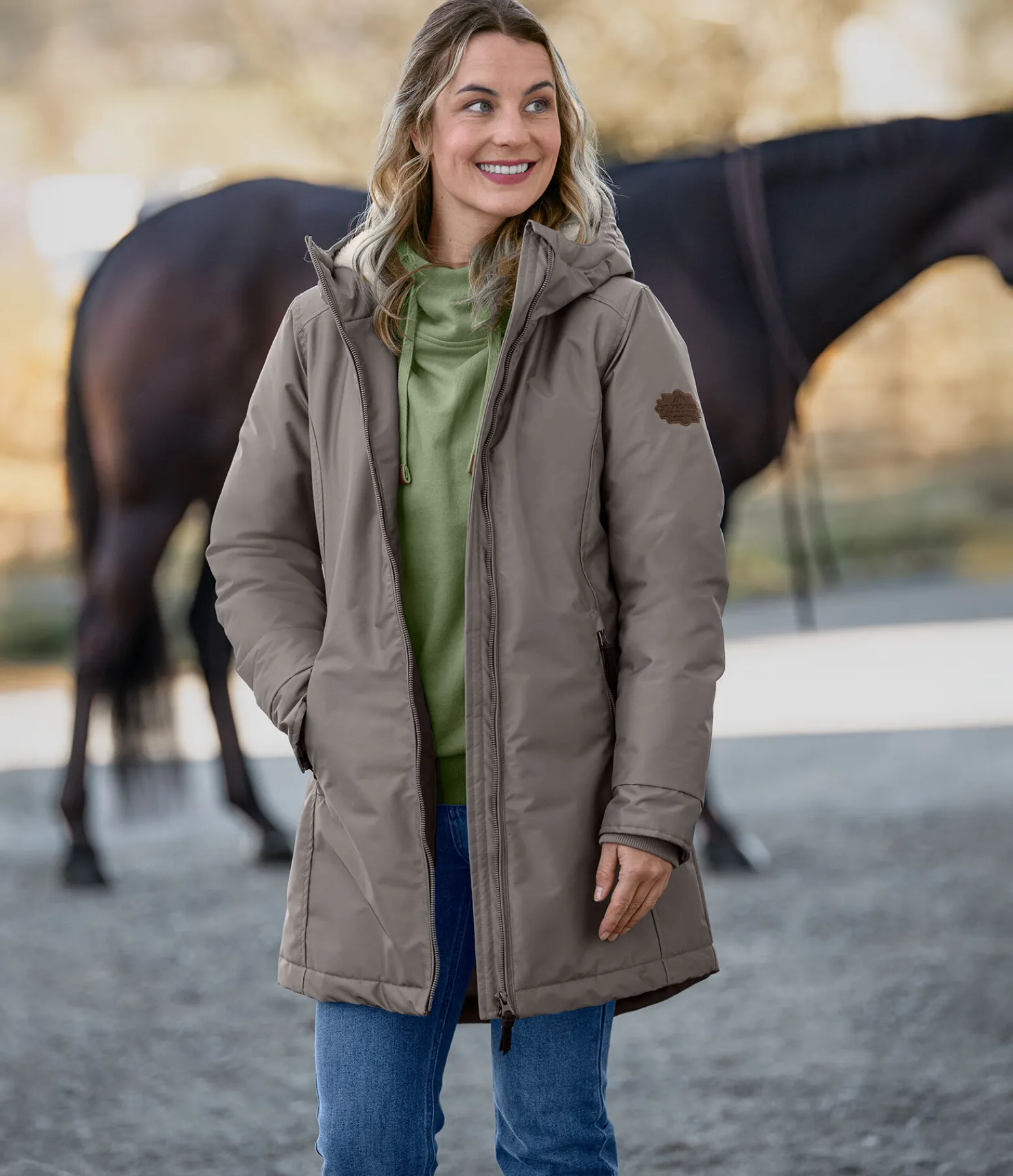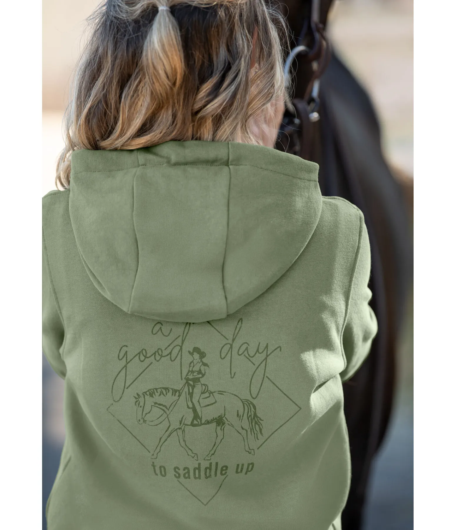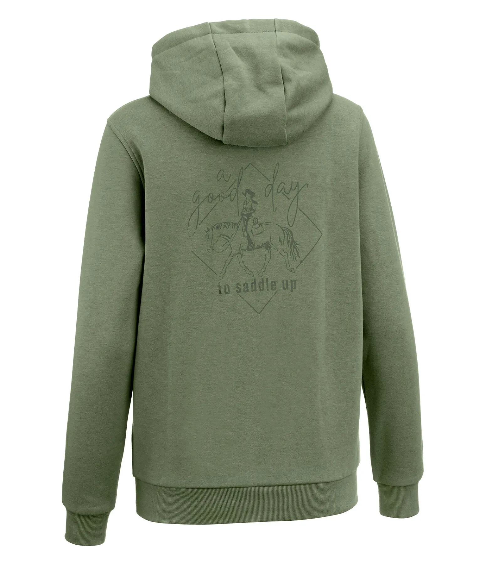 Sweat à capuche ample avec grand motif western dans le dos. Finition bord-côte à la taille et en bas des manches. Capuche réglable par cordon. Logo appliqué devant à la taille. 65 % polyester, 35 % coton.