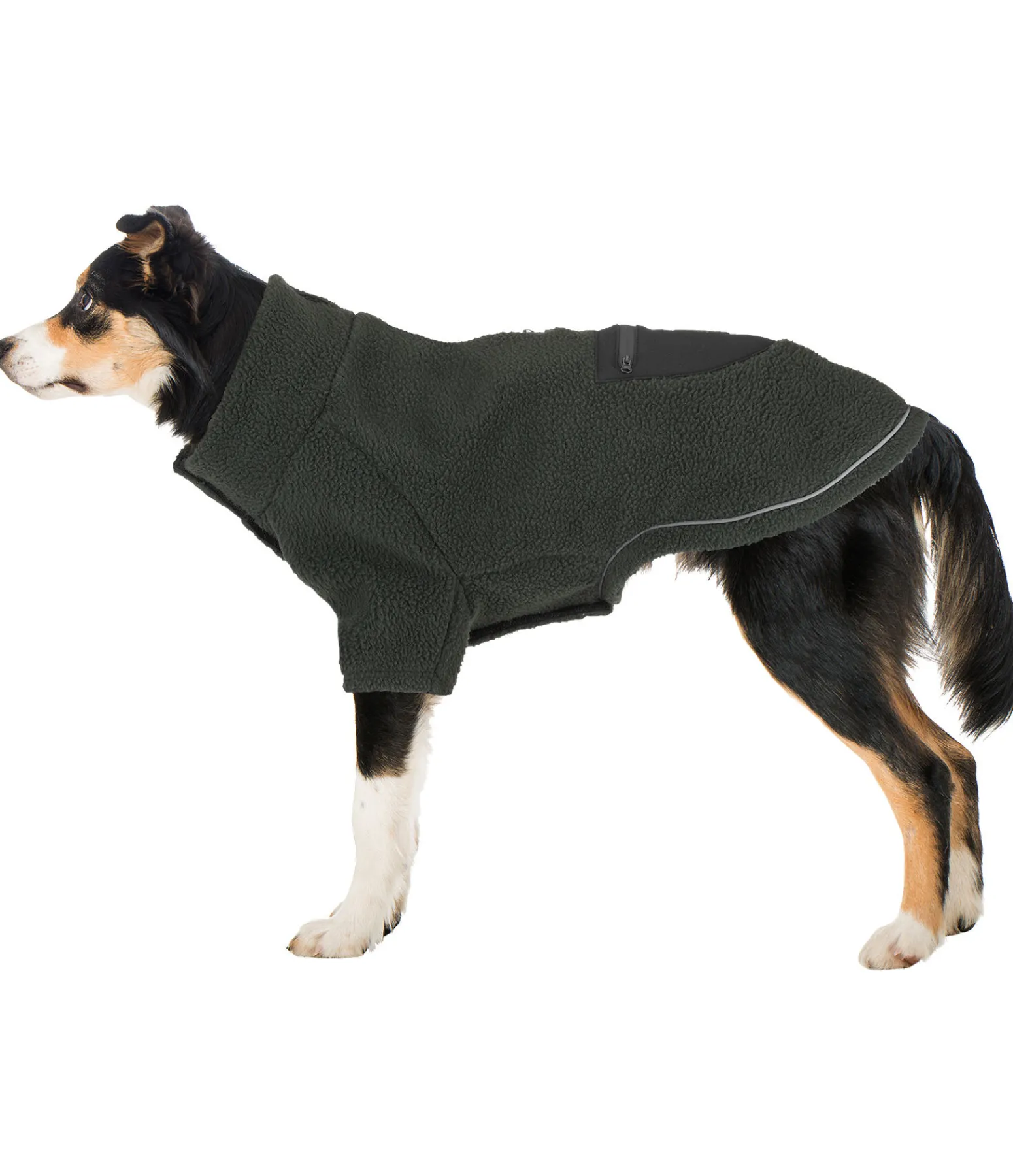 Idéal pour les journées froides et humides. Sweat chaud en polaire sherpa. Revêtement déperlant. Col montant pour garder le cou au chaud. Poche plaquée zippée en Softshell sur le dos. Passepoil réfléchissant pour plus de sécurité dans l’obscurité. Fente au niveau du col et petite fermeture à glissière bidirectionnelle dans le dos pour pouvoir accéder au collier ou au harnais. Courroies élastiquées pour les postérieurs. Ouverture et fermeture par patte auto-agrippante au niveau du ventre. Le chien n’a pas besoin de passer la tête par une encolure. Poser le sweat entièrement ouvert sur le dos du chien, faire passer les deux pattes antérieures dans les manches dédiées et fermer avec la patte auto-agrippante. Faire passer les postérieurs dans les courroies élastiquées. 100 % polyester.