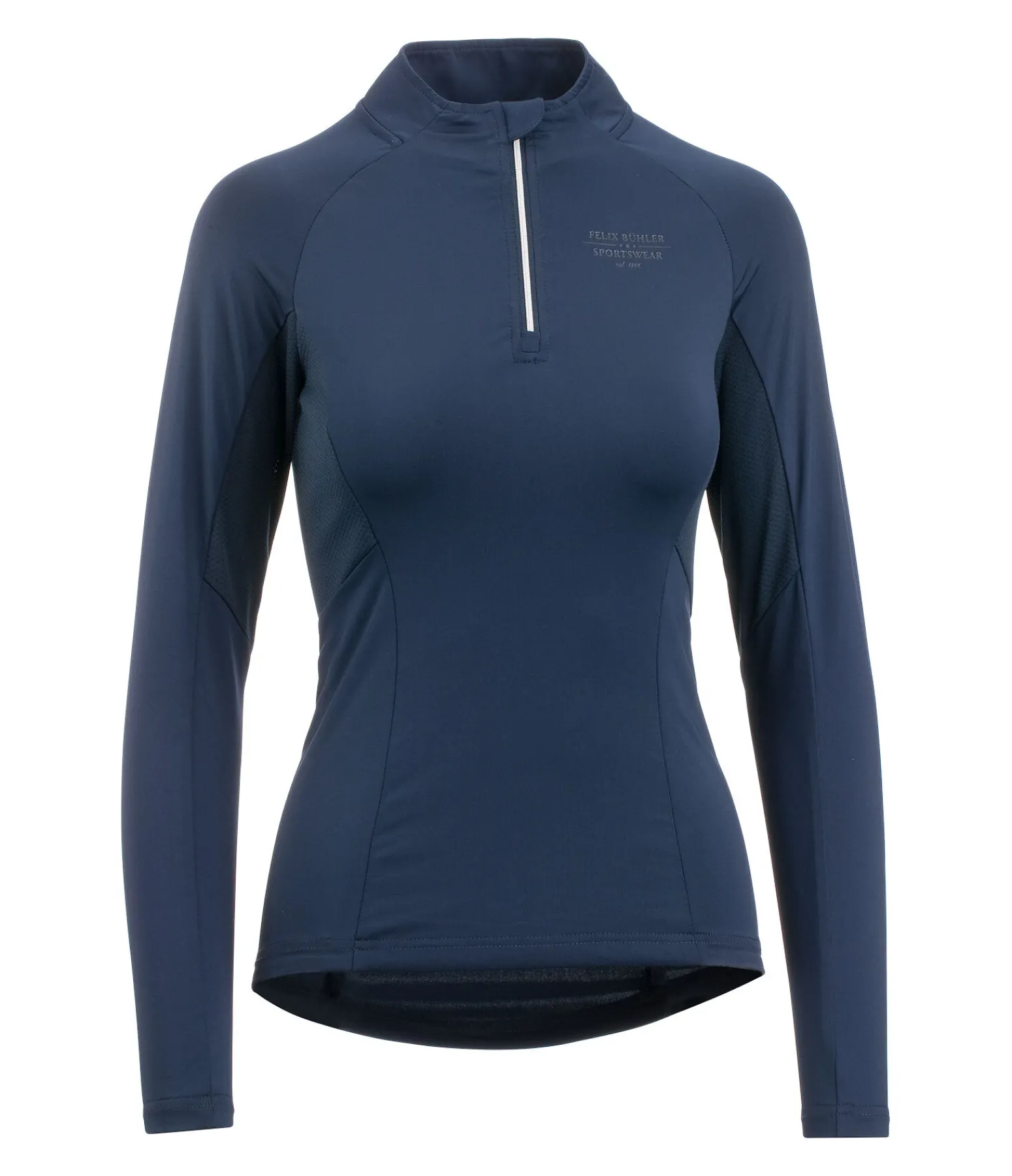 T-shirt à manches longues extensible et doux. Col montant zippé. Empiècements en mesh pour une respirabilité optimale. Manches raglan. Matière à séchage rapide. 88 % polyester, 12 % élasthanne.