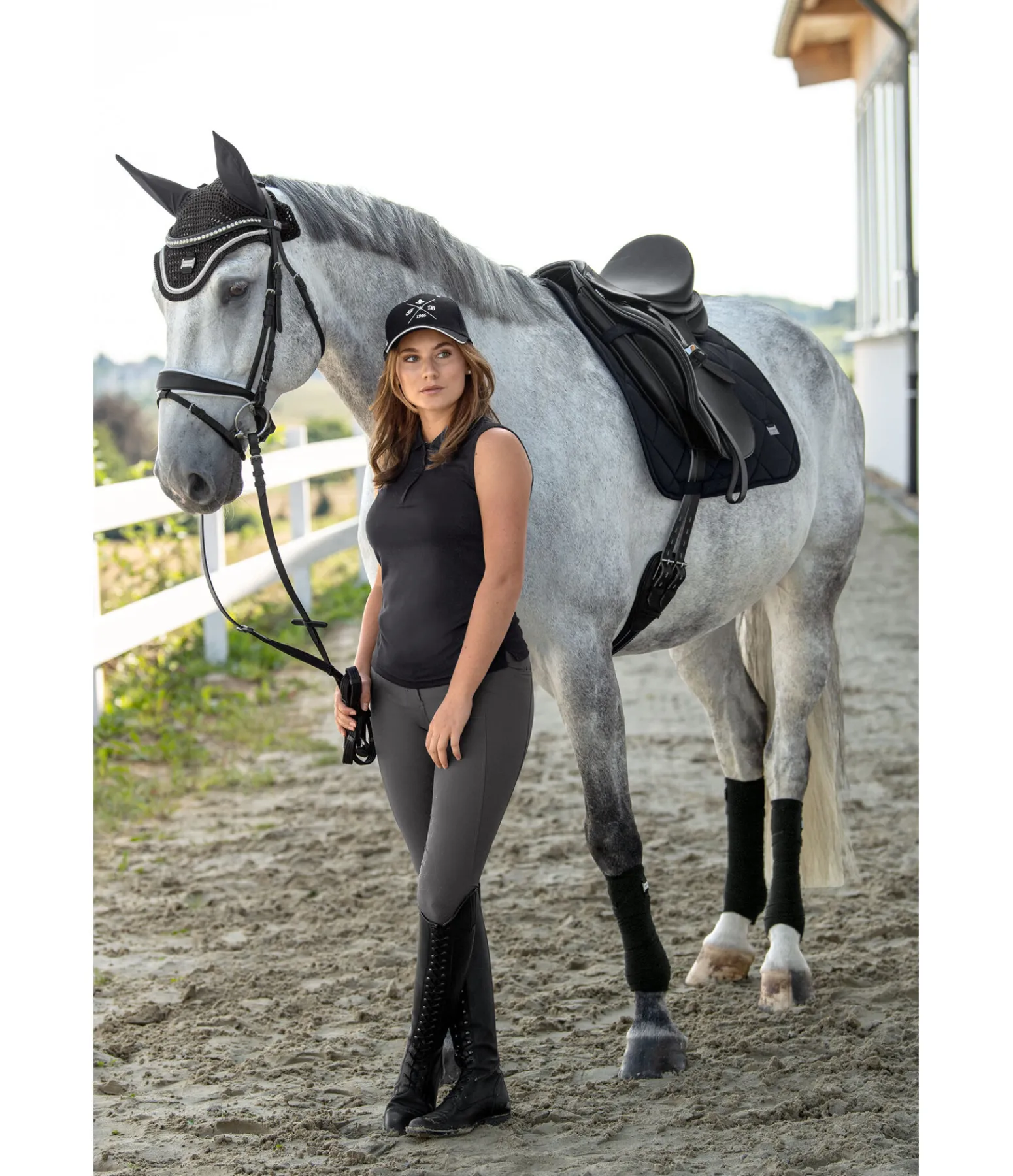 Tapis de selle épuré et brillant en tissu satiné avec une élégante surpiqûre en losange. Orné de chaque côté d’une petite plaque métallique avec logo. Passants de sangle et de contre-sanglons avec patte auto-agrippante pratique. Dessous en Air mesh respirant et absorbant l’humidité. 100 % polyester.