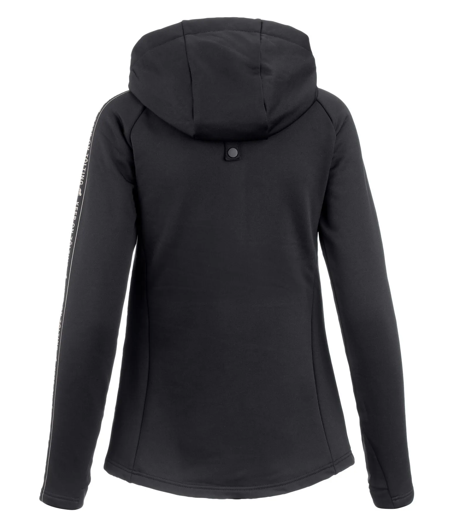 Veste à capuche technique et respirante avec intérieur doux. À séchage rapide. Fermeture à glissière double sens dissimulée, 2 poches zippées, capuche réglable par cordons de serrage et pouvant être fixée dans le dos. Avec inscription sur les manches et passe-pouce intégré. 93 % polyester, 7 % élasthanne.