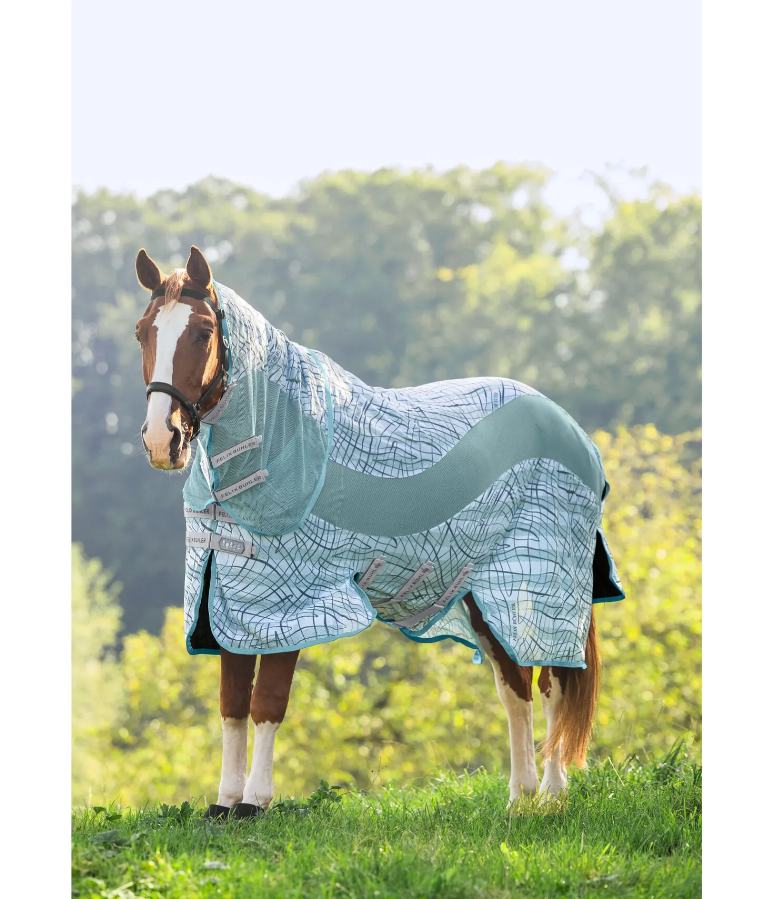 Couverture anti-mouches technique 2-en-1. Coupe bien pensée, côtés rallongés, rabat de queue extra large et rabat ventral généreux pour une protection efficace contre les mouches gênantes. Avec pattes auto-agrippantes. Couvre-cou amovible pouvant être fixé en toute sécurité grâce à 3 pattes auto-agrippantes. Cela évite même les insectes rampants. Le résultat de recherches approfondies dans le domaine de la lutte contre les mouches a montré que le motif de camouflage naturel des zèbres sauvages irrite les mouches et permet alors d’éviter qu’elles ne se posent sur le cheval. Le motif très contrasté avec des lignes qui se croisent agit sur les mouches comme un leurre. Les insectes ne comprennent pas quelle forme a le cheval et ne peuvent donc pas se poser sur lui. Nous avons un peu fait évoluer le motif zébré et avons développé une couverture avec un motif moderne qui donne l’effet recherché sans que le cheval ne paraisse « déguisé ». De plus, cette couverture dispose de plusieurs couches : doublées, les différentes tailles de mesh sont plus respirantes et rendent le matériau plus robuste face aux événements extérieurs. Aucune lourde fermeture métallique n’ayant été utilisée, la couverture reste légère. Courroie de queue réglable et doublure intérieure protégeant les crins au niveau des épaules, le long de la crinière et du rabat de queue. Fixation frontale élastique et réglable en continu, qui maintient le protège-cou en position même sans licol. 100 % polyester.