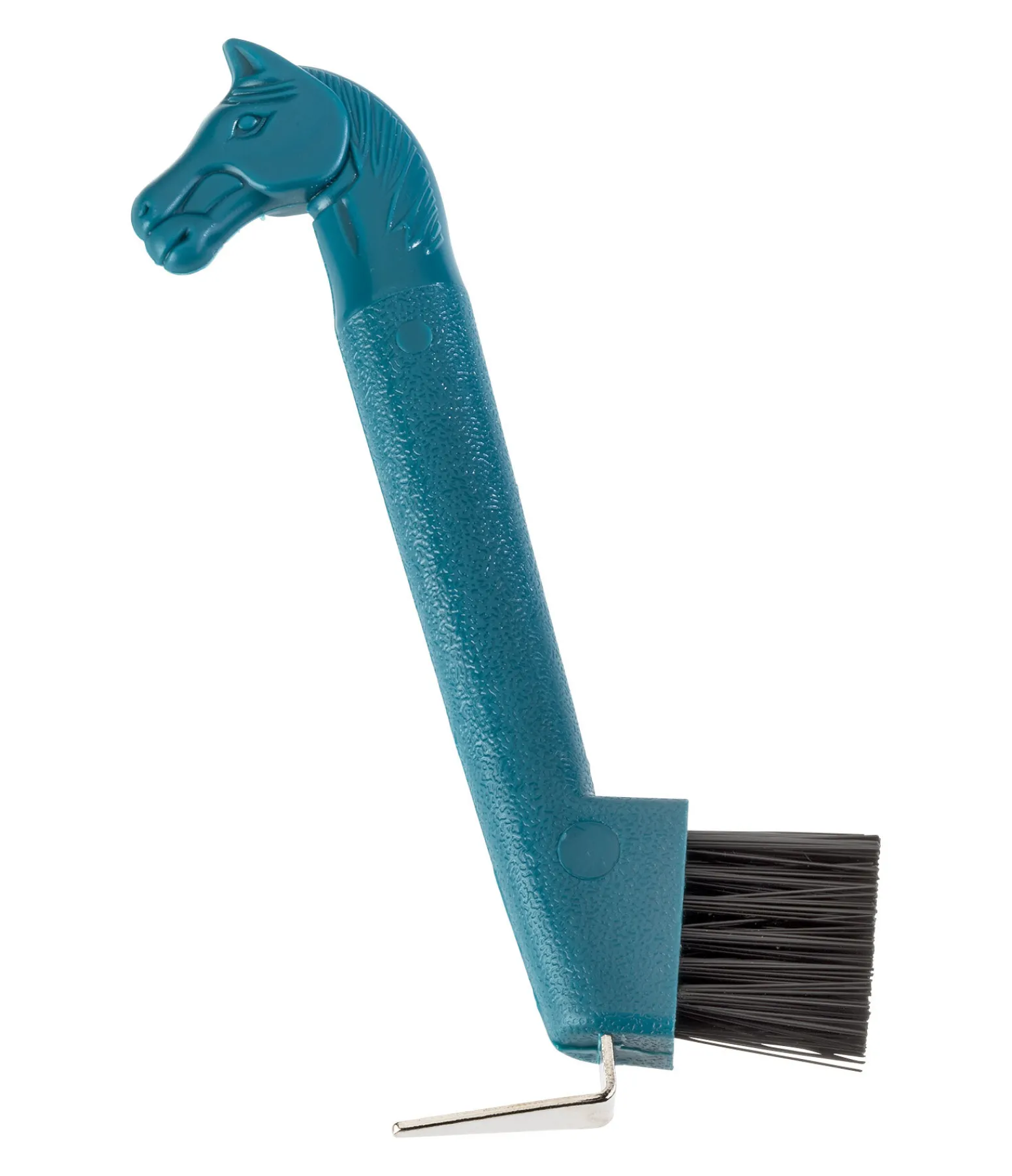 Cure-pied robuste avec tête de cheval qui ne doit manquer dans aucune boîte de pansage. Le poinçon en métal est extrêmement robuste et ne se plie pas. Si vous devez ôter une pierre coinçée entre le sabot et le fer, l’angle d’origine peut être facilement restauré. Les poils de la brosse sont pratiques et intégrés. Ils ne s’effilochent pas et conservent leur forme longtemps. En plus des nombreux coloris disponibles, le cure-pied brosse séduit par son excellent rapport qualité-prix.