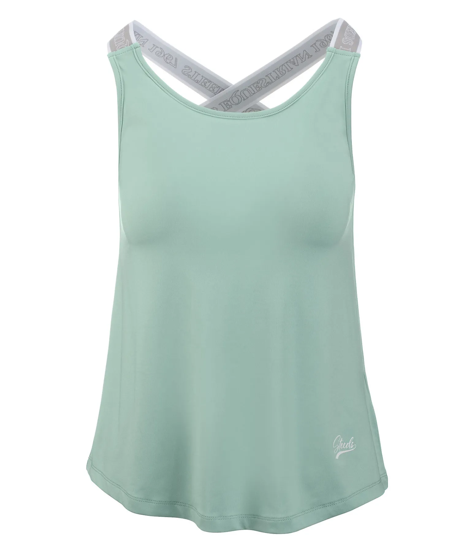 Débardeur technique sportswear. Matière extra douce et respirante. Séchage rapide. Bretelles croisées extensibles avec logo STEEDS. Coupe ample. Idéal pour les fortes chaleurs. 94 % polyester, 6 % élasthanne.