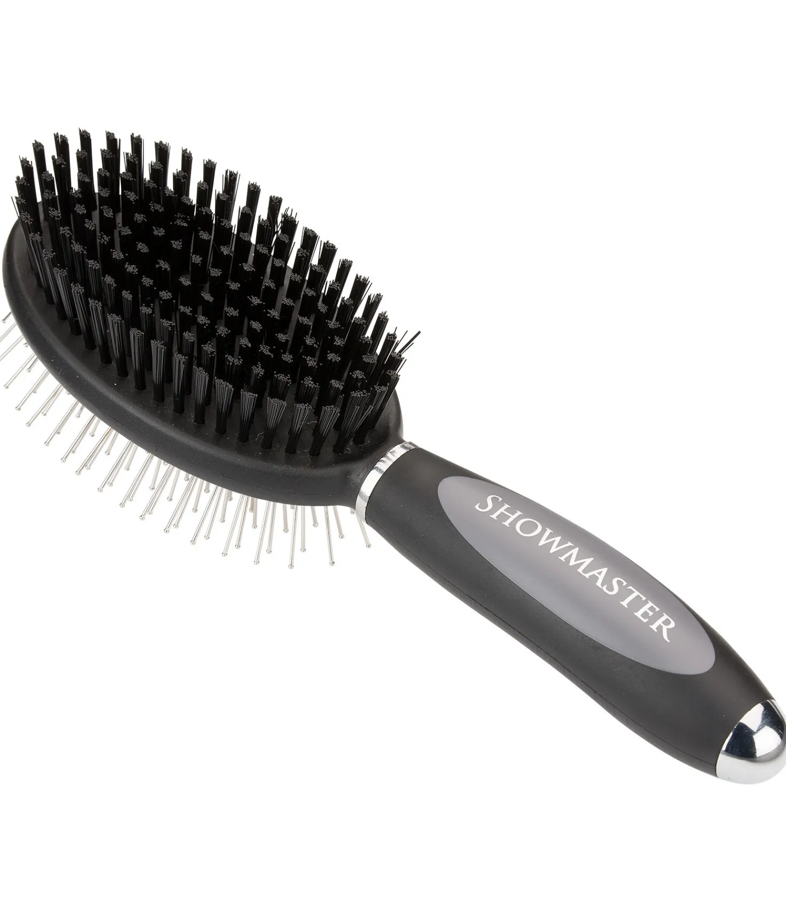Un côté avec de solides pointes en acier pour peigner la crinière et la queue et l’autre côté avec des poils en synthétique pour retirer la poussière et la saleté. Poignée ergonomique en plastique. 23 x 7 cm.