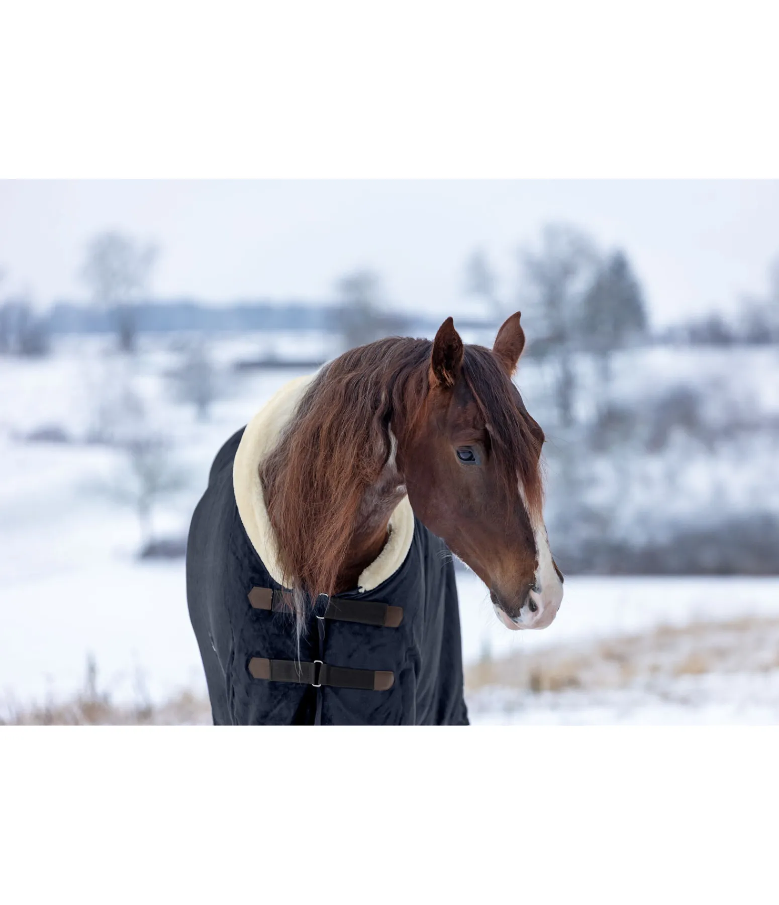 Chemise polaire douce. Matière respirante. Large encolure en polaire Teddy. Fermeture par patte auto-agrippante au niveau du poitrail . Sangle ventrale. Broderie étoilée sur le flanc. 100 % polyester.