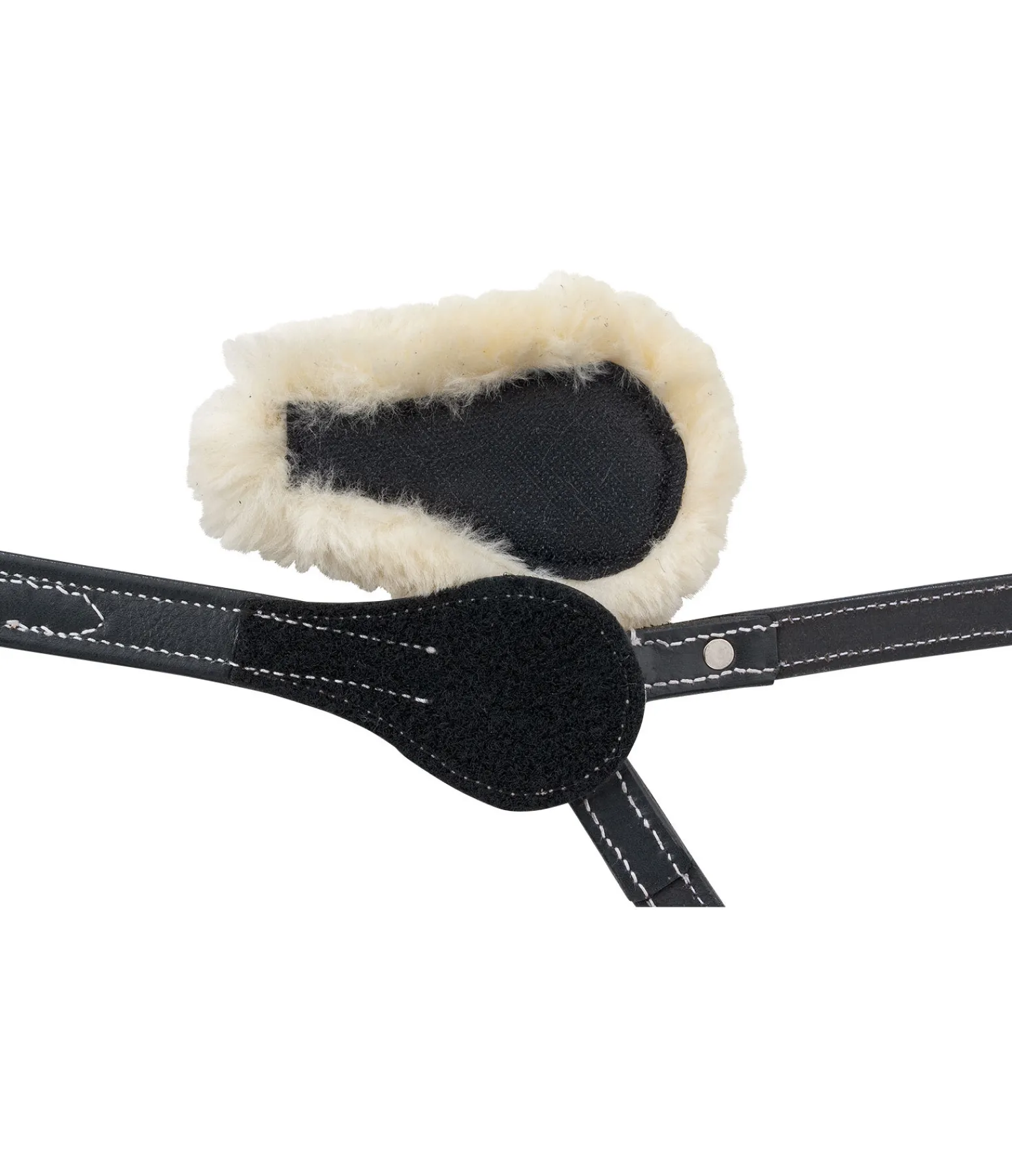 Collier de chasse élégant. Taille ajustable grâce aux élastiques. Cuir véritable haut de gamme avec surpiqûres de couleur contrastante. Rembourrages amovibles en polaire Teddy sur les points de pression au poitrail et au garrot. Fourche de martingale réglable et amovible. Anneaux de martingale ouvrables. Fixation rapide à la selle grâce à des mousquetons pratiques. Bouclerie argentée.