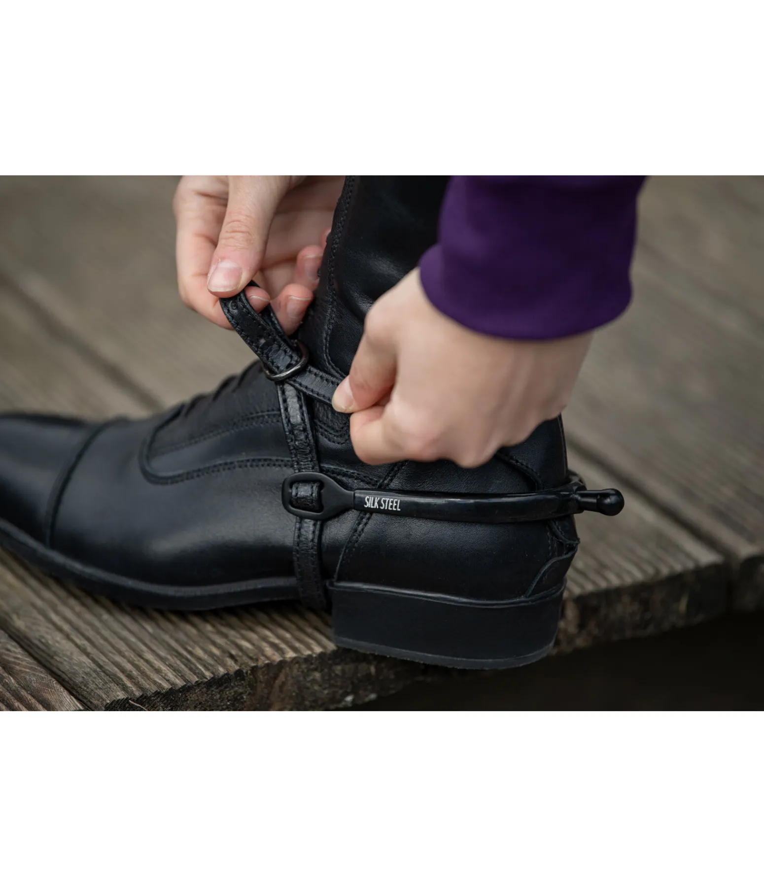 Éperons à bout rond en acier inoxydable noir mat. Forme améliorée des oeillets pour faciliter le passage des lanières. Revêtement silicone avec imprimé SILK STEEL. Longueur de tige : 20 mm.