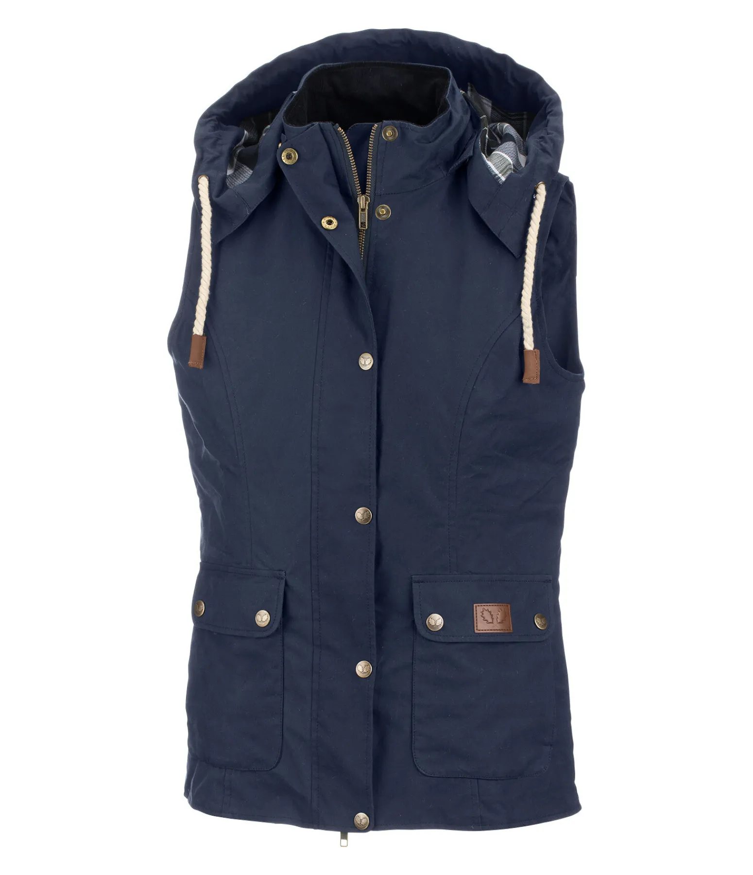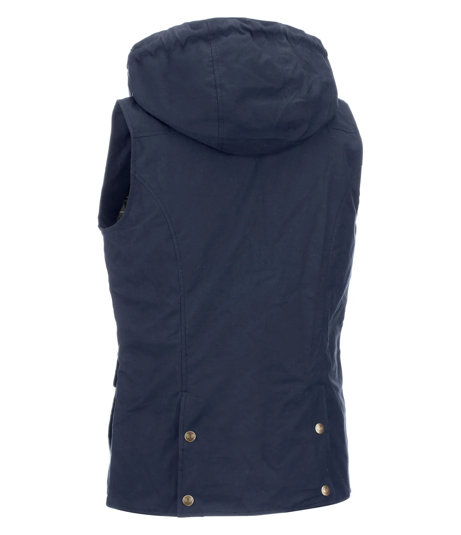 Gilet sans manches de qualité supérieure. Respirant et légèrement rembourré. Capuche amovible. En coton huilé aux propriétés très déperlantes et respirantes. Idéal pour la mi-saison ! Avec doublure douce à carreaux. Le gilet dispose d’une fermeture à glissière double sens pratique ainsi que de deux fentes cavalières avec boutons-pression pour une liberté de mouvement optimale à l’écurie ou en selle. Avec ses deux poches avec boutons-pression et ouverture latérale ainsi qu’une poche intérieure, il offre assez de rangements pour son portable et autres. Capuche amovible grâce à une patte de boutonnage derrière le col en velours côtelé. Capuche réglable par cordon de serrage. Matière extérieure 100 % coton huilé, doublure 100 % coton, garnissage 100 % polyester.
