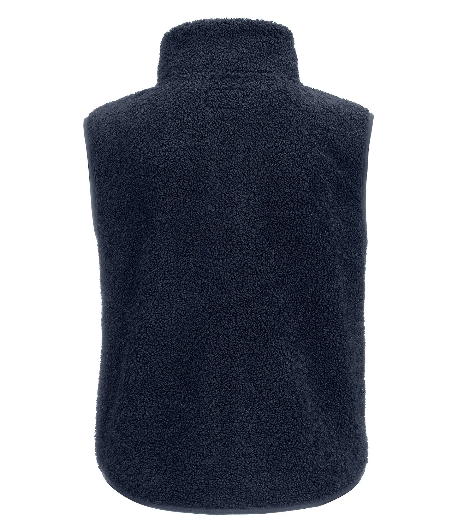 Gilet en polaire Teddy douce et extensible. Col montant. Coupe plus longue à l’arrière. Fermeture à glissière double sens avec sous-patte. Deux poches zippées latérales dissimulées. Étiquette STEEDS à la taille. 100 % polyester.