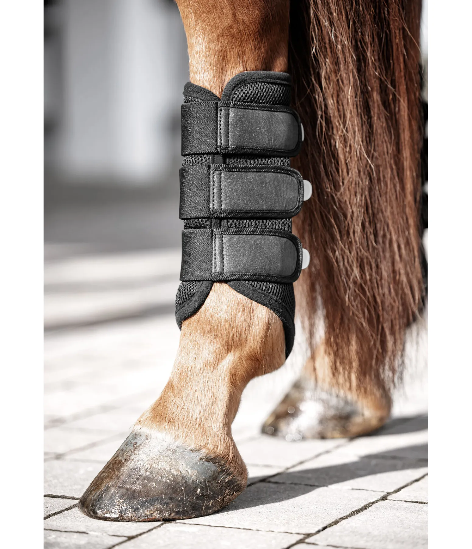 Guêtres pour les postérieurs légères, souples et particulièrement respirantes en matière Air Mesh qui permet une circulation de l’air permanente. Inserts scintillants sur les attaches et pattes auto-agrippantes élastiquées pour un ajustement optimal. Renfort sur la face intérieure en tissu d’extérieur 600 deniers pour une protection supplémentaire contre les chocs. Bord en polaire douce. 100 % polyester. Vendues par paire.