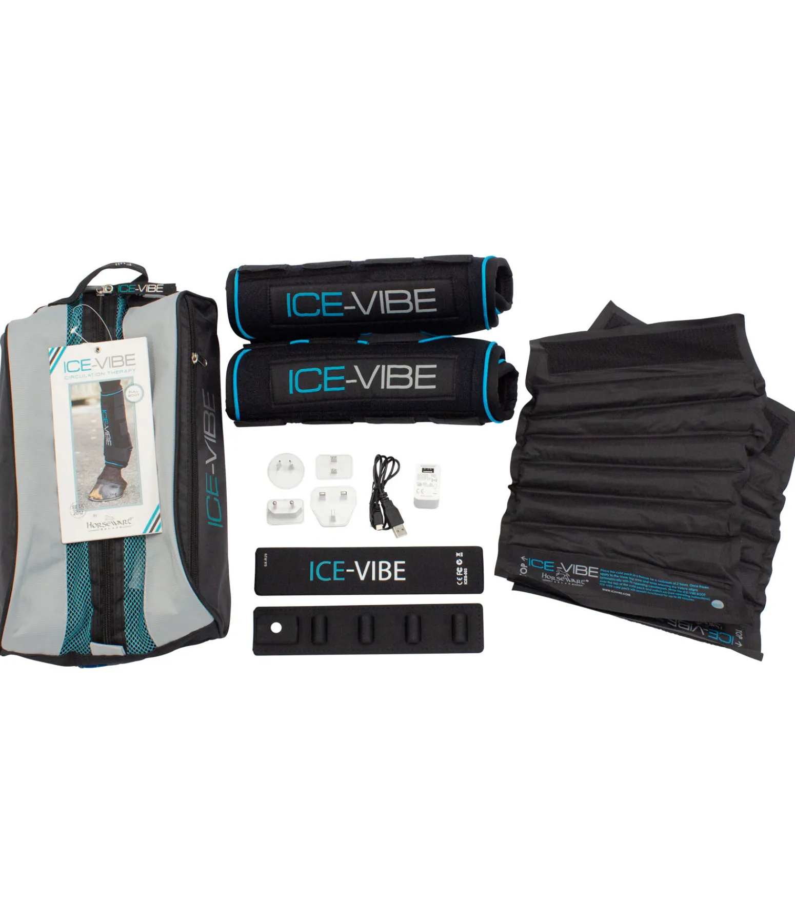 Guêtres thérapeutiques livrées avec 2 coussins rafraîchissants ou chauffants, 2 éléments vibrants, chargeur et adaptateur universel. Les vibrations stimulent la circulation sanguine et accentuent ainsi énormément les effets bénéfiques du froid ou chaud pouvant être apportés par les coussins, ce qui stimule les processus de guérison et de régénération. Peuvent être utilisées avant et après l’entraînement quotidien pour diminuer le risque de blessure aux tendons et ligaments ou pendant une convalescence. Ne pas utiliser en cas de fracture, infection ou de blessure. Vendues par paire.