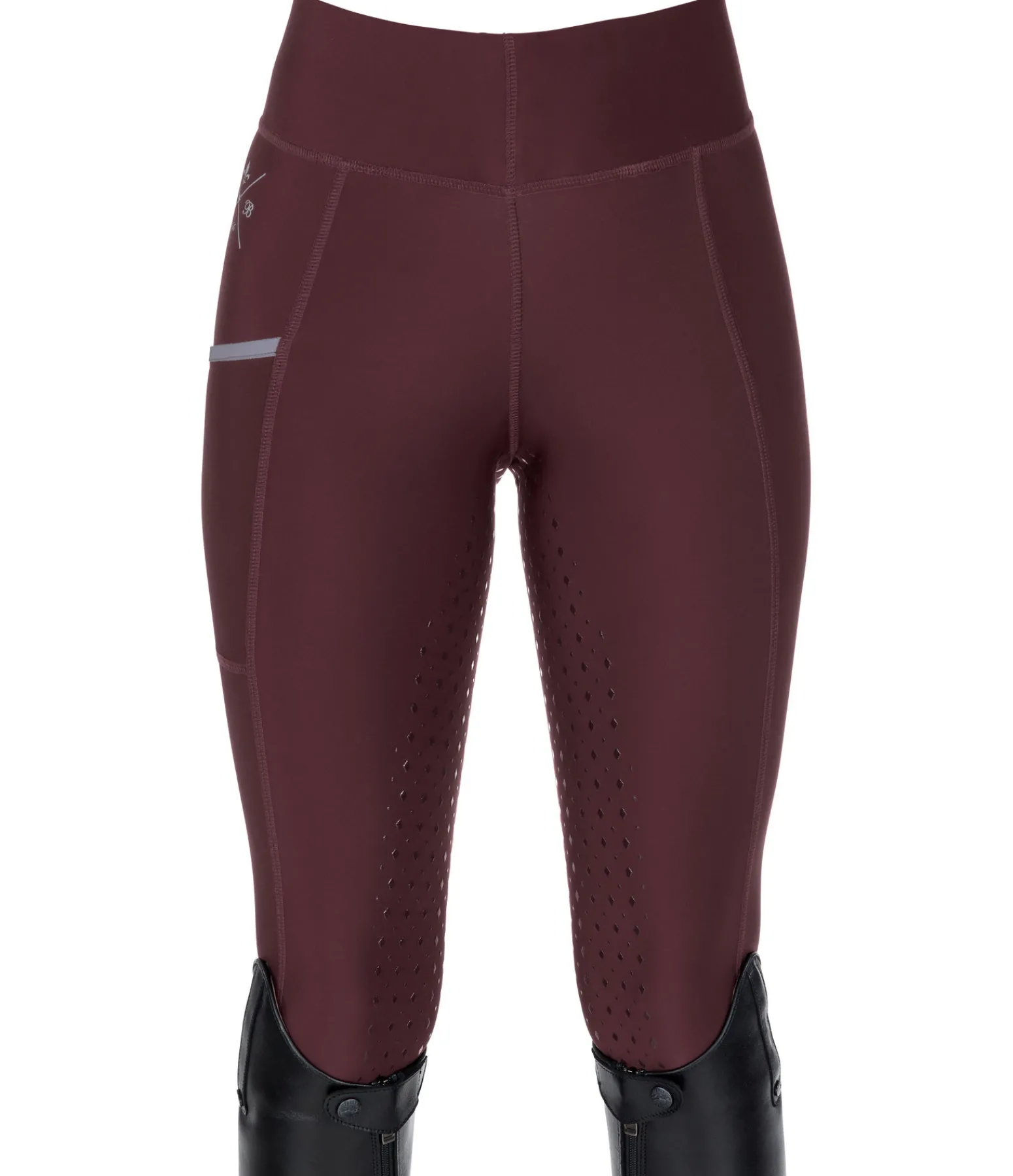Legging d’équitation confortable. Fond intégral grip en silicone. Matière stretch extensible dans 4 directions. Ceinture extra large. Poche zippée arrière et poche latérale pour téléphone portable. Aucune couture au niveau des genoux. Bas de jambe extensible. Imprimé siliconé Felix Bühler. 90 % nylon, 10 % élasthanne.