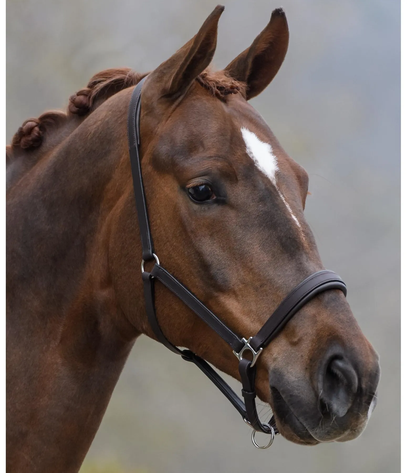 Licol en cuir gras classique de coupe simple avec doublure en cuir moelleux à la têtière et à la muserolle. Logo discret embossé sur la têtière. Têtière et muserolle facilement réglables. Bouclerie argentée.