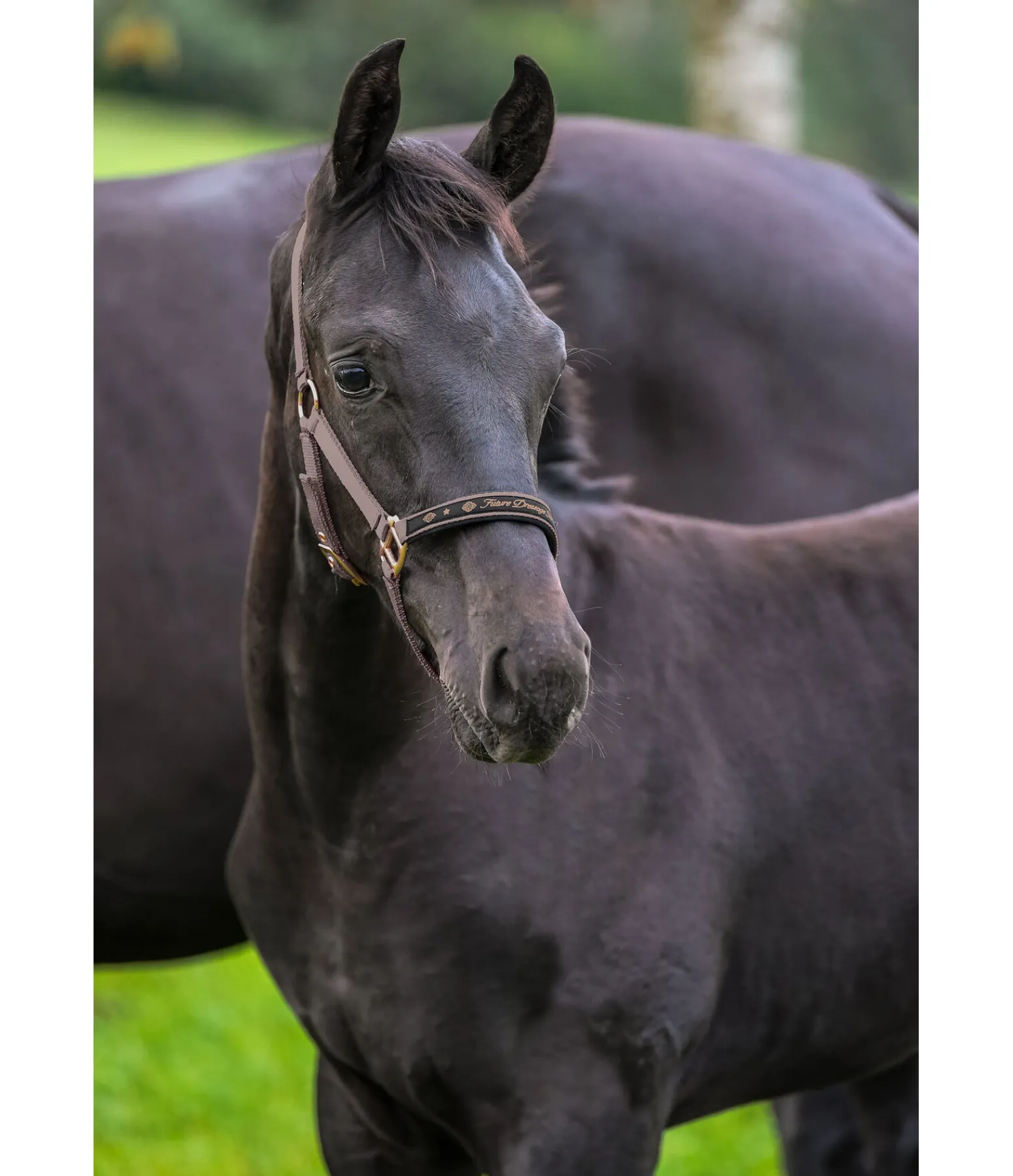 Licol pour les futurs champions de CSO ou de dressage avec broderie scintillante et éléments décoratifs de couleur contrastante sur la muserolle : « Future Jumping Star » en couleur MR et « Future Dressage Star » en couleur WA. Têtière, sous-gorge et muserolle réglables. Avec mousqueton. Broderie et bouclerie rose doré. 100 % polypropylène.
