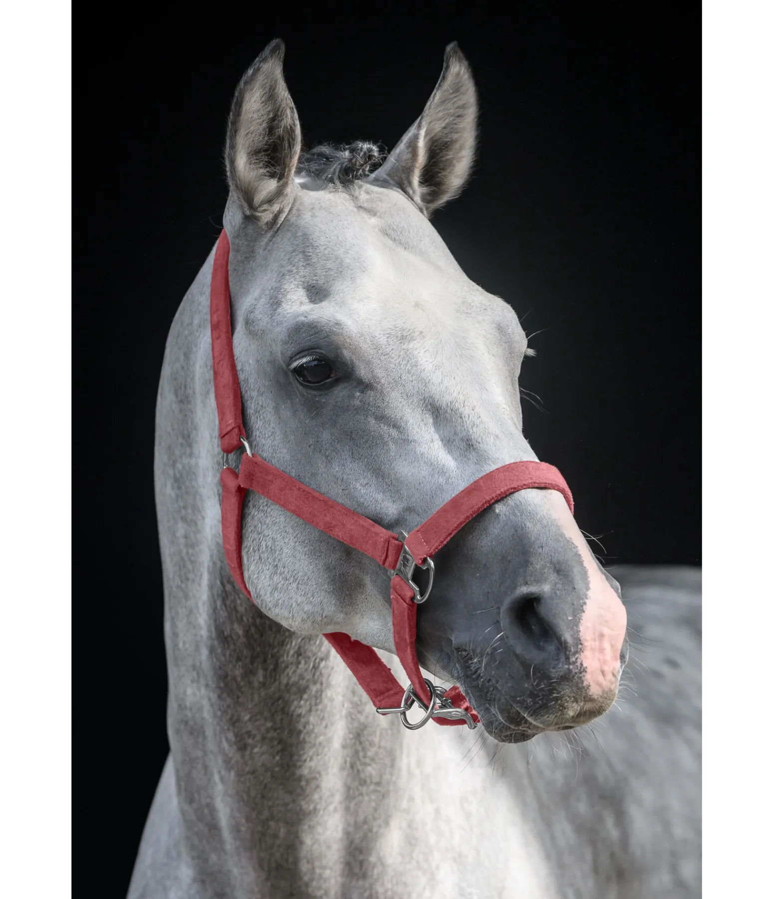 Élégant licol entièrement doublé en matière satinée. Avec plaque logo métallique brillante. Têtière et muserolle réglables. 100 % polypropylène.