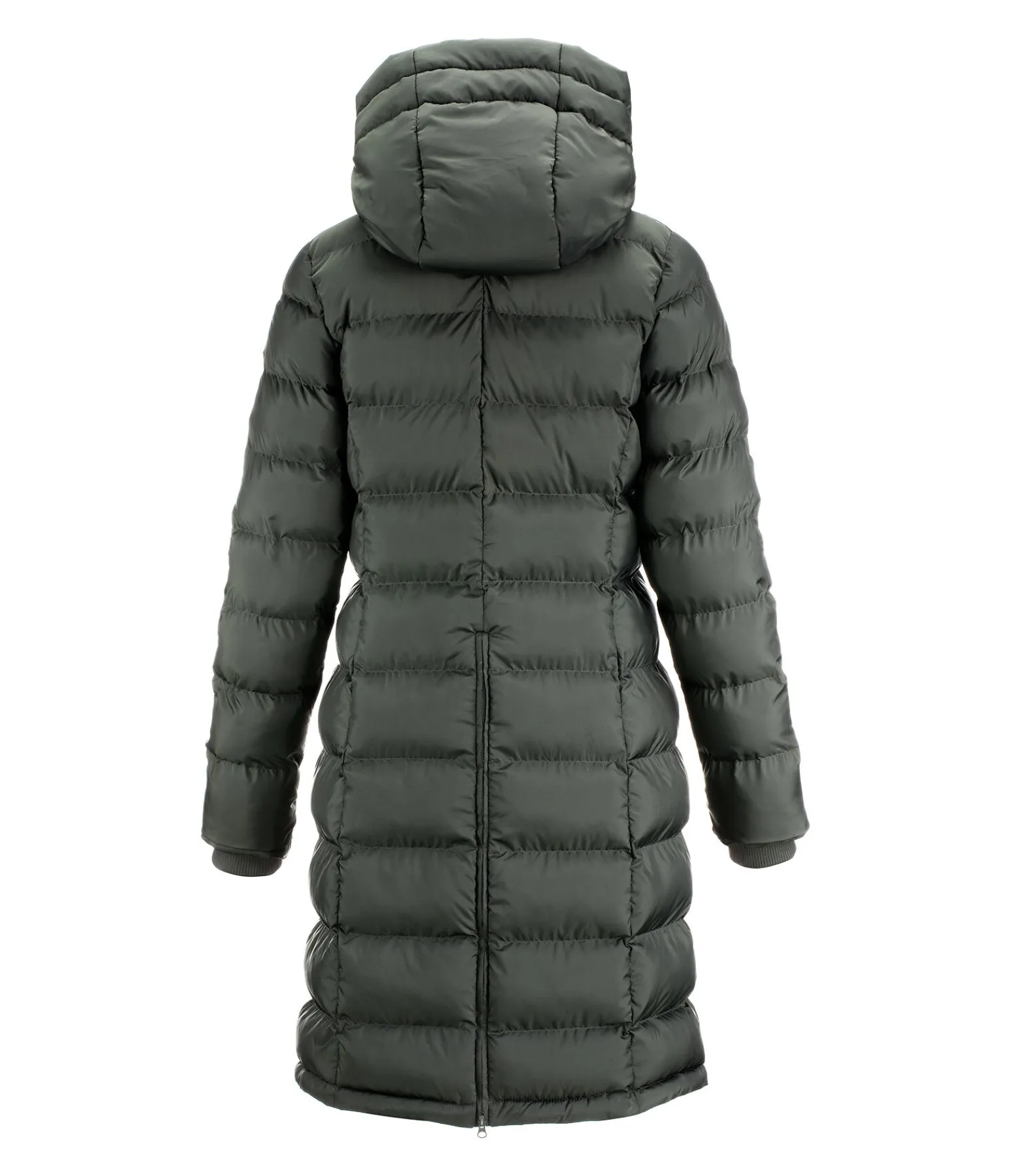 Manteau tendance long et extra chaud. Garnissage doux imitation duvet. Col montant. Capuche réglable avec système d’attache dans le dos. Fermeture à glissière double sens dissimulée. Deux poches latérales zippées dissimulées et doublées de polaire douce. Finition bord-côte en bas des manches. Longue fente cavalière zippée à l’arrière. Broderie Felix Bühler sur la manche. 100 % polyester.