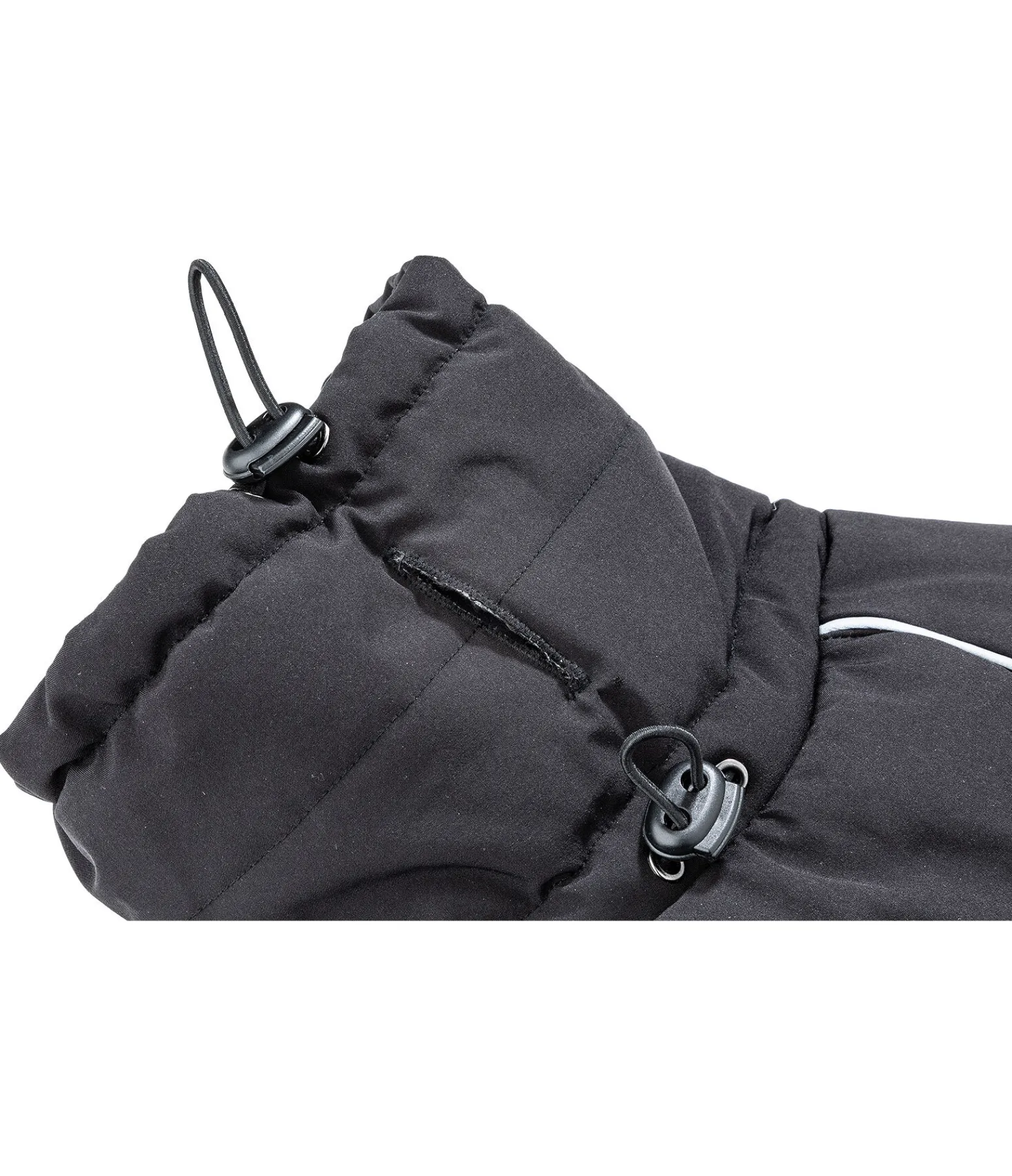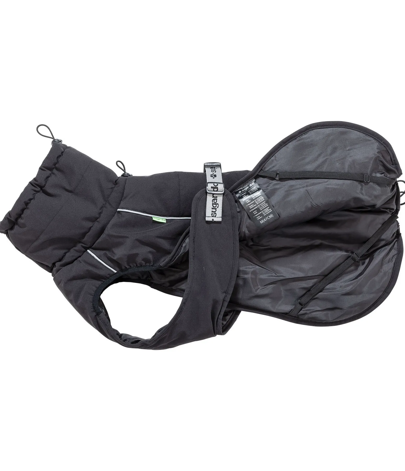 Manteau d’hiver technique avec une doublure de 300 g le long de la ligne du dos et une doublure de 200 g sur les côtés et le rabat ventral. La matière extérieure douce est fortement déperlante et s’ajuste au corps du chien pour un confort parfait. Le large col est réglable en deux points pour le meilleur ajustement. Le rabat ventral est fixé à l’aide d’un élastique réglable en continu qui se ferme par un clip. La bordure aux pattes avant est élastiquée afin de garantir une liberté de mouvement maximale tout en protégeant bien du froid. Avec des passepoils réfléchissants pour une visibilité accrue. Un élastique permet d’ajuster le manteau à l’arrière train pour couvrir au mieux et ainsi bien protéger du froid. Passage de harnais étanche et de collier. Doublure intérieure lisse et douce pour le poil. Courroies de cuisses élastiques et ajustables. 100 % polyester.
