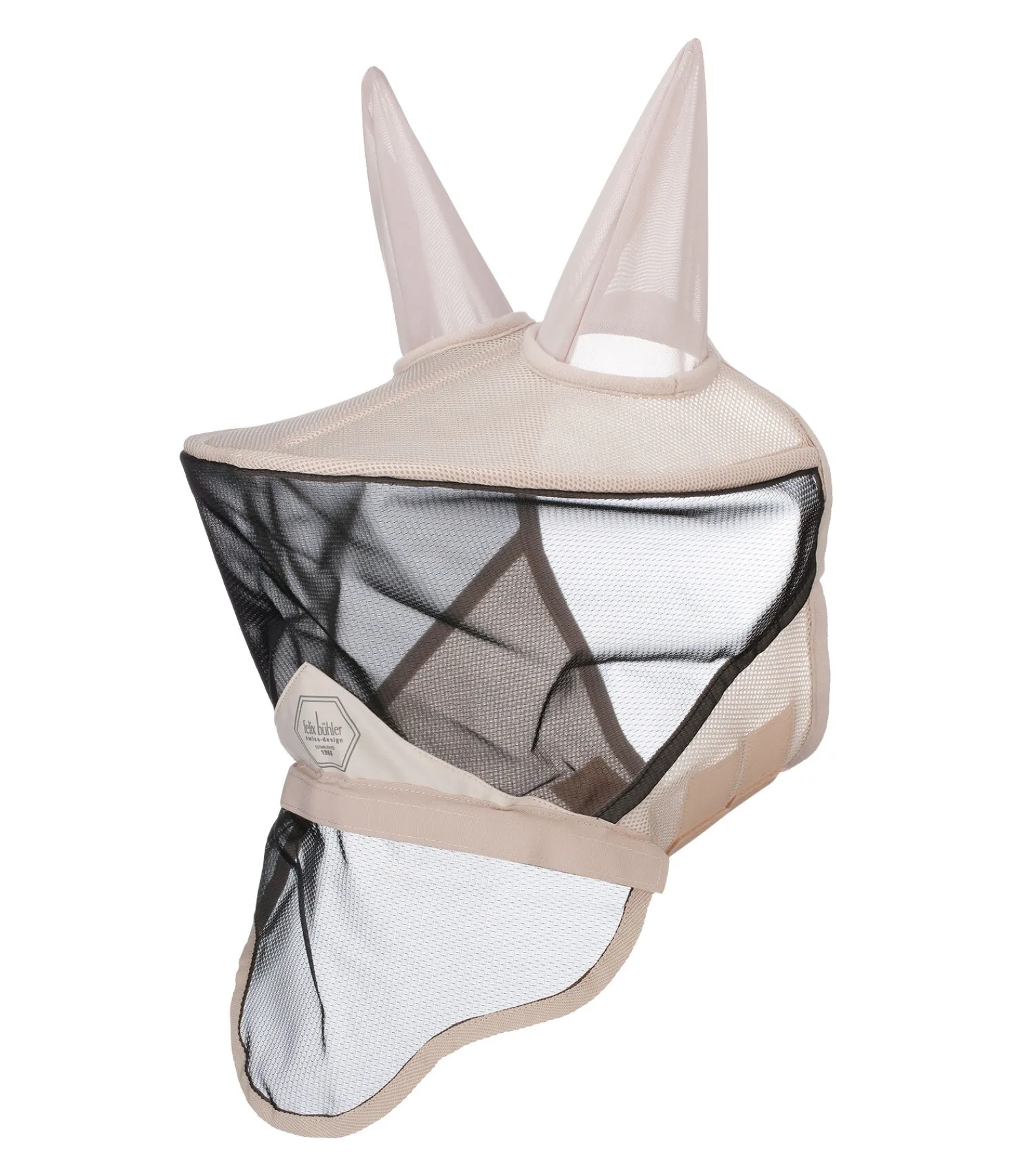 Masque anti-mouches inspiré de l’équipement des apiculteurs ! Protection amovible pour les naseaux, et protection anti-UV, en maille MVT (Moisture Vapor Transmission) particulièrement respirante. Permet une circulation permanente de l’air et empêche l’accumulation de chaleur sous le masque. Protège parfaitement les oreilles, les naseaux et les yeux des moustiques et autres insectes. En mailles serrées Ripstop particulièrement résistantes et arceau permettant de maintenir le filet à distance des yeux, même lorsque le cheval se roule et s’ébroue. Le protège-naseaux anatomique et amovible par patte auto-agrippante, permet de protéger cette zone sensible sans énerver le cheval ni gêner sa respiration. Bordure en polaire douce pour éviter les irritations dues aux frottements. Matière stretch extensible perforée aux oreilles. Double patte auto-agrippante pour un maintien sûr. Protection UV 60 % + (selon la norme BS EN 13758-1:2002 + A1:2006: textiles – protection contre les rayonnement ultraviolets du soleil). 100 % polyester