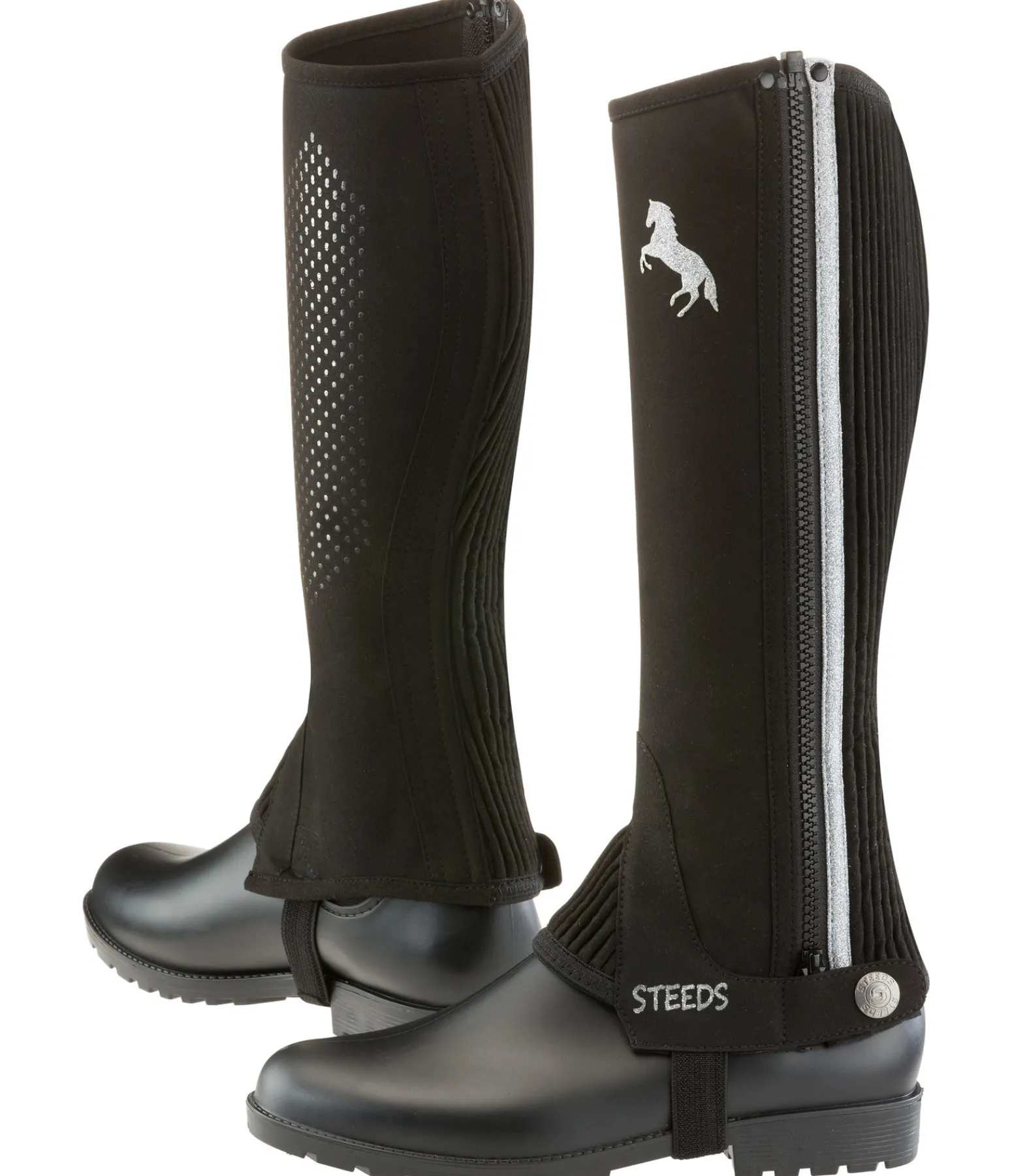 Mini-chaps tendances. Matière synthétique Amara lavable en machine. Détails scintillants de couleur contrastante. Motif imprimé devant. Empiècements extensibles à l’arrière et au cou-de-pied pour une adaptation parfaite au mollet et à la cheville. Fermeture à glissière robuste avec rabat fermé par bouton-pression en bas. Sous-pieds élastiques renforcés.