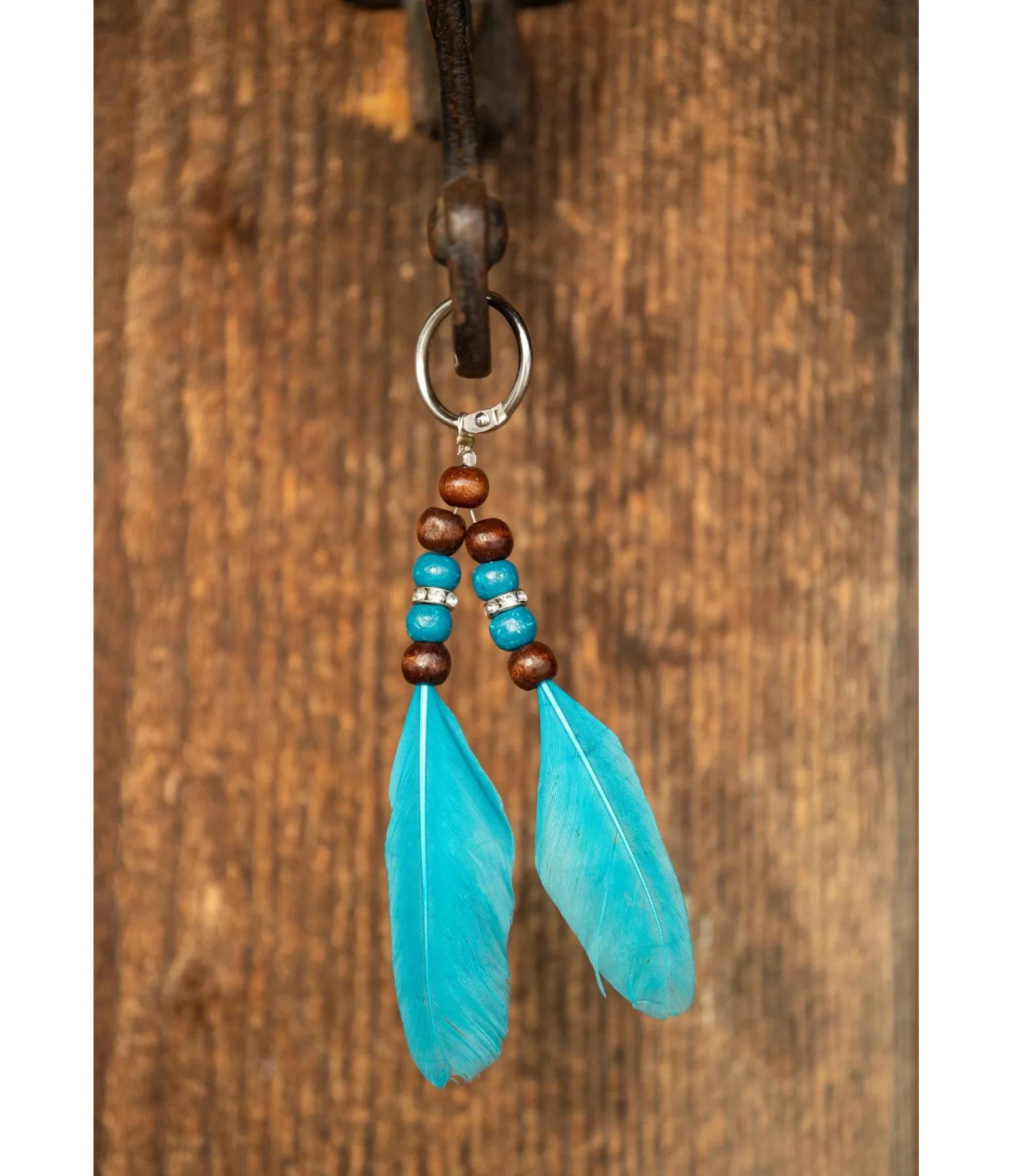 Superbe porte-clés avec perles et plumes pour décorer bridons, licols, colliers de chasse, etc. Anneau pour un accrochage facile et rapide.