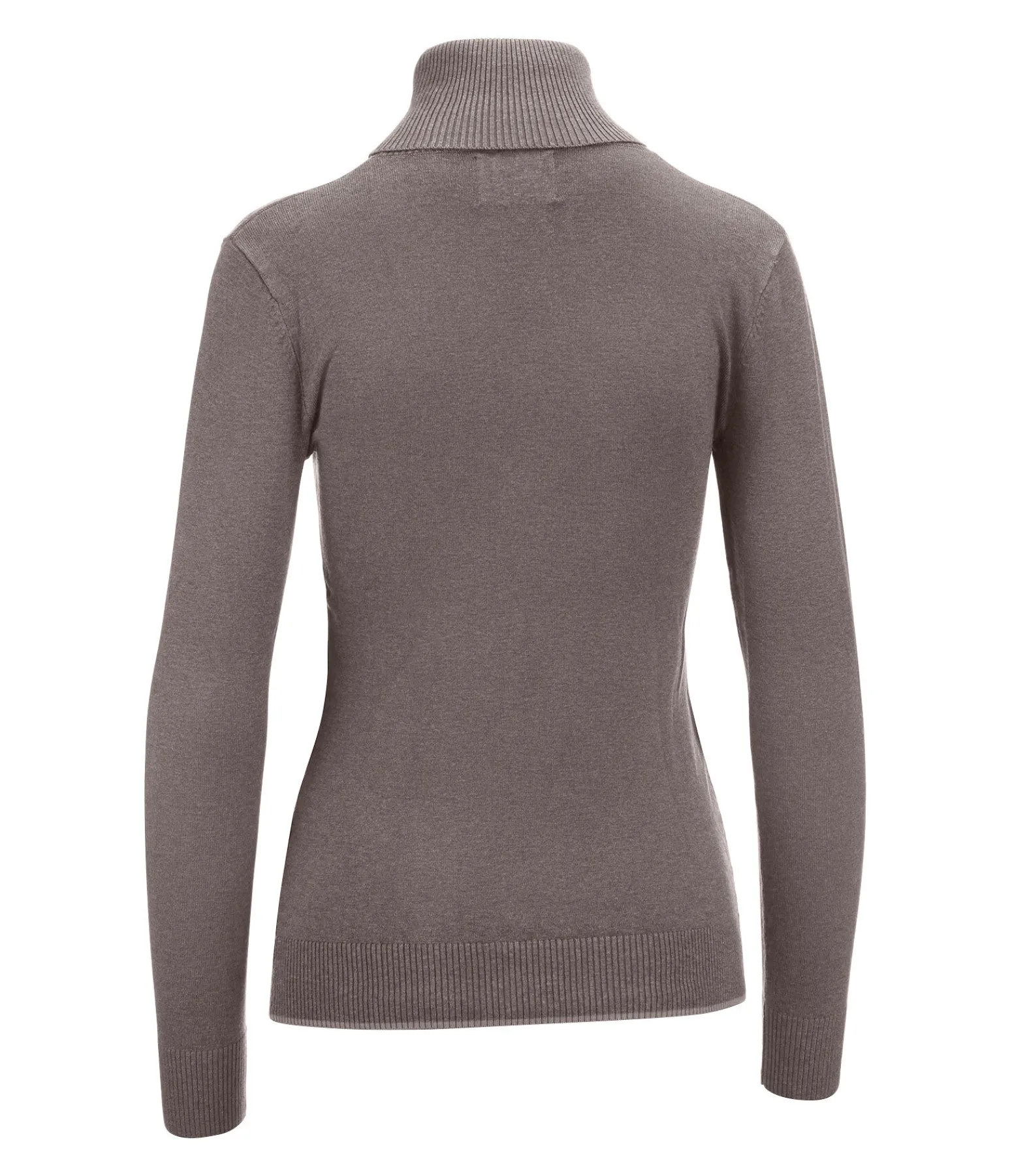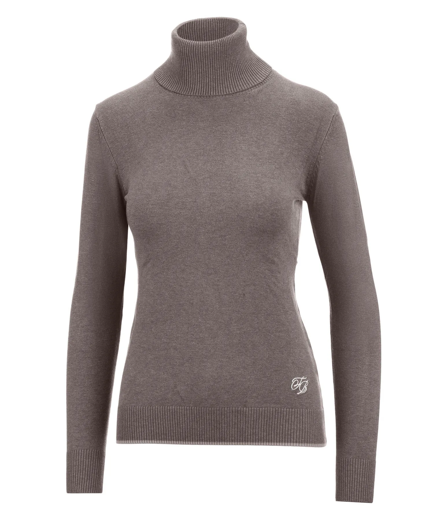 Pull-over doux à col roulé. Aspect chiné. Logo brodé. Finition côtelée en bas des manches et à la taille. Bordure de couleur contrastante à la taille. 80 % viscose, 20 % nylon.