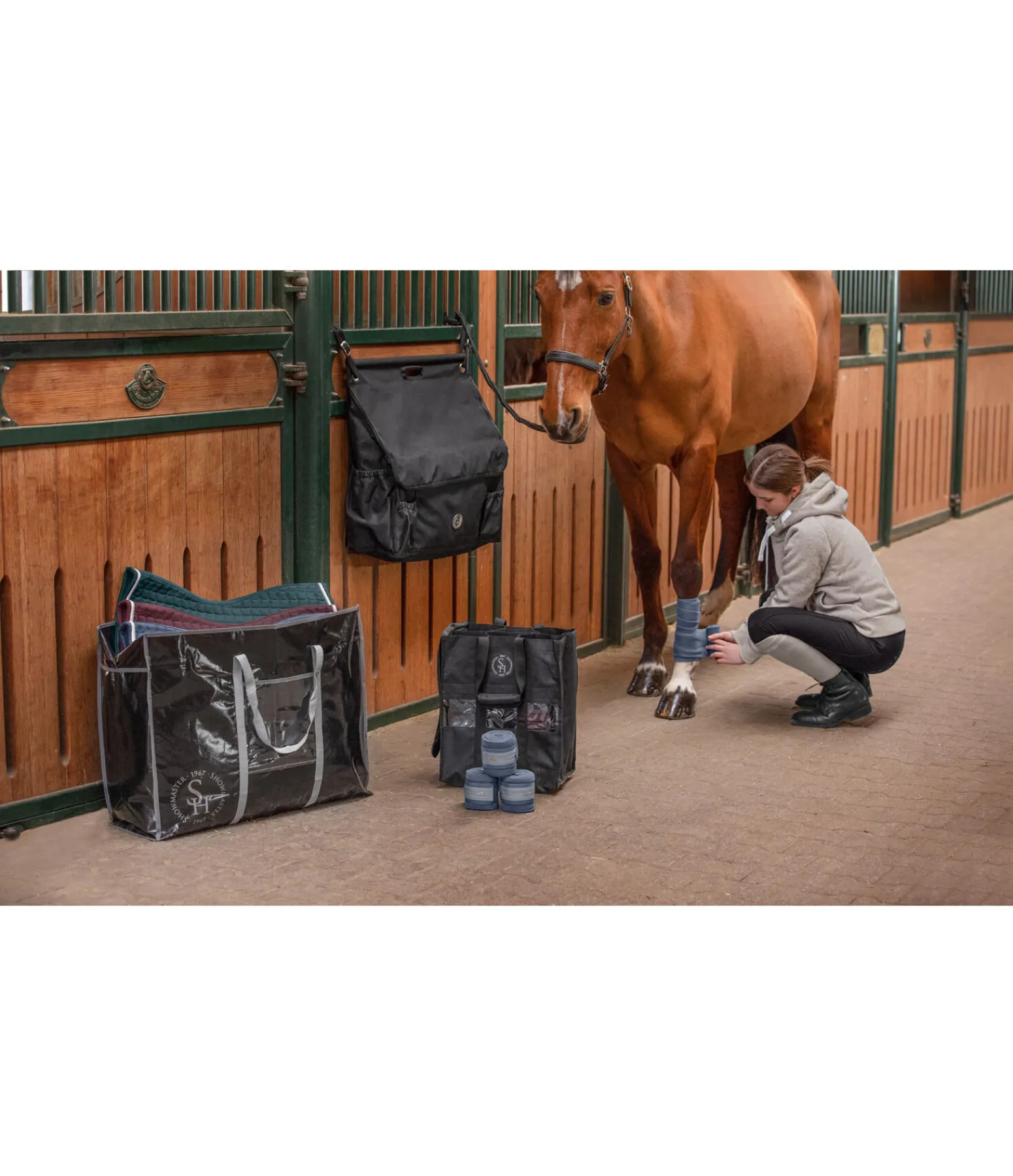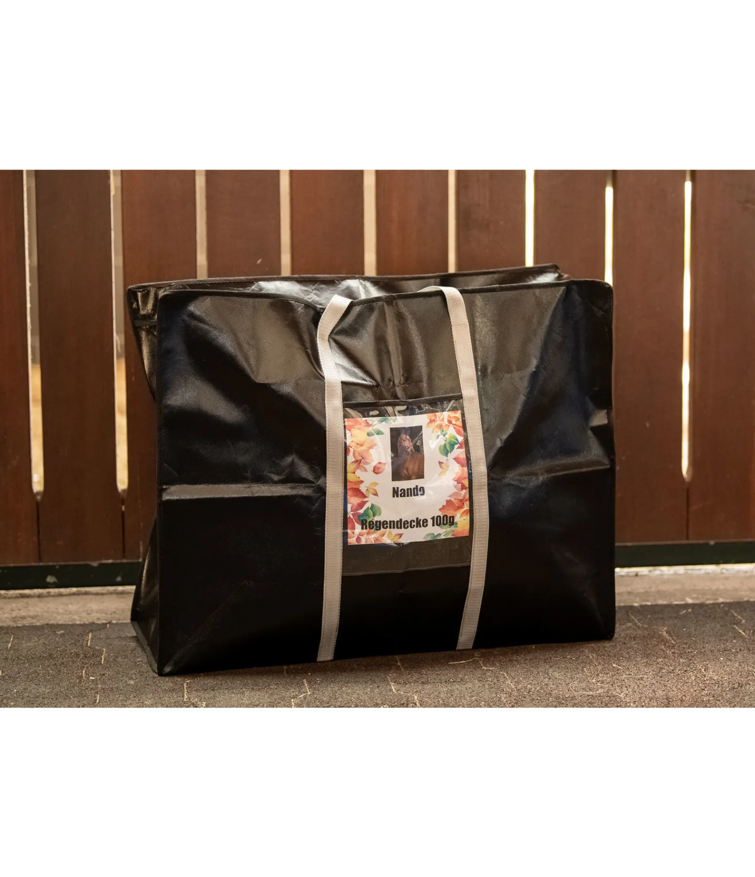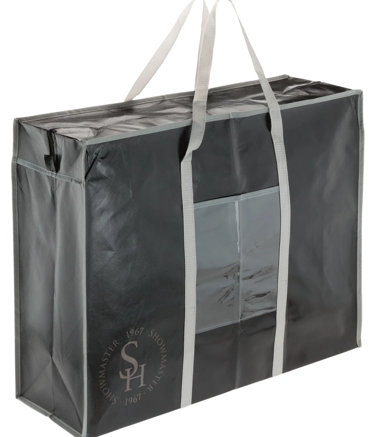 Parfait pour ranger et transporter tapis de selle et couvertures. La poche transparente à l’avant permet de ranger papiers et monnaie. Avec fermeture à glissière et poignée. Lavable. 69 x 55 x 24 cm.