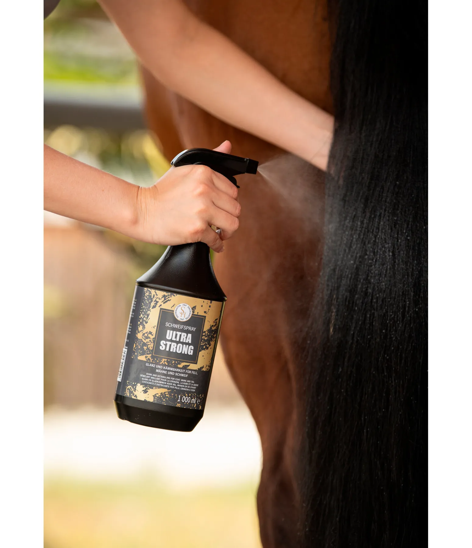 Application: Bien agiter avant l’emploi ! Vaporiser sur le poil, la crinière et la queue. Laisser sécher brièvement avant de peigner.