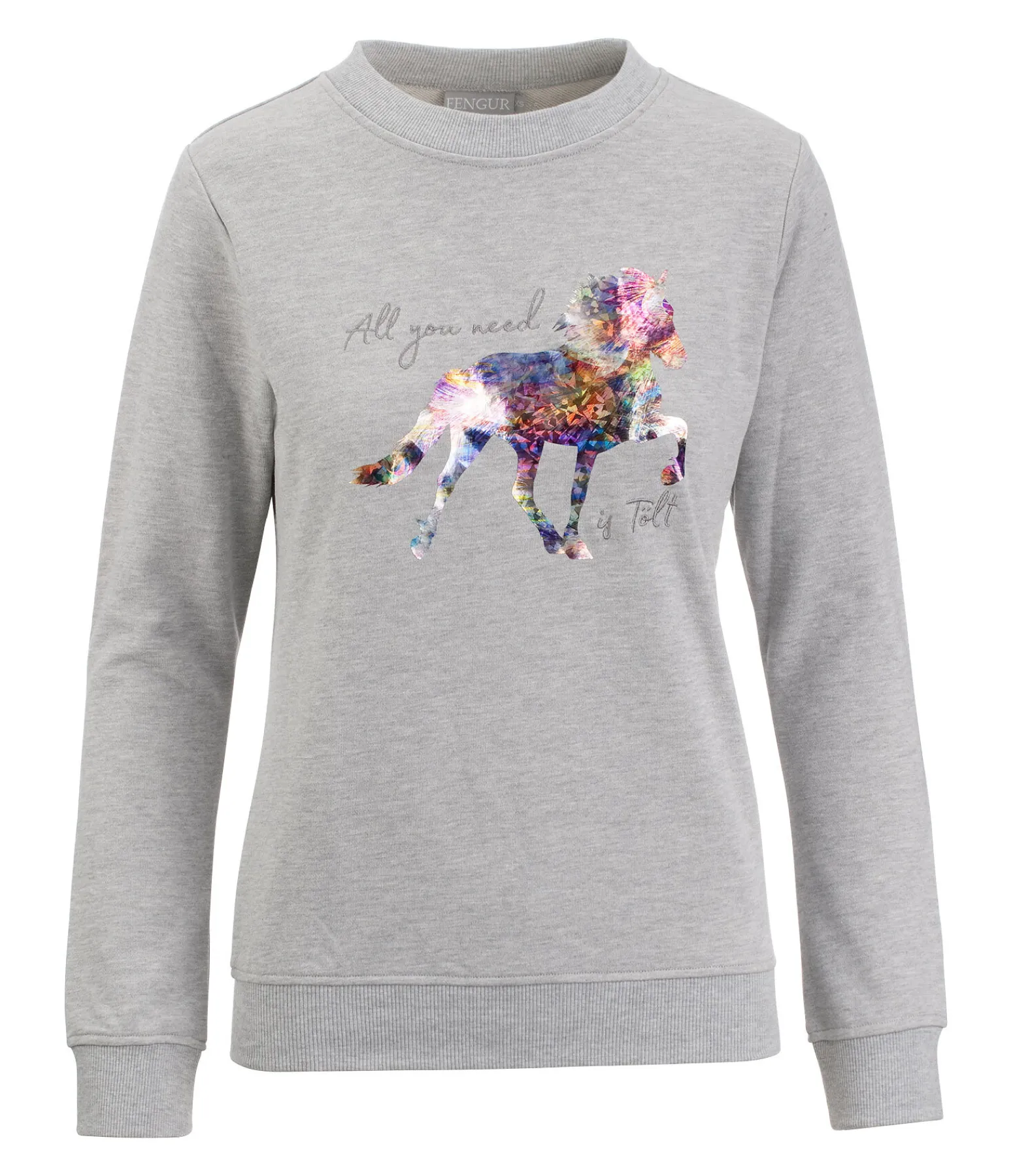 Sweat décontracté élastiqué au niveau des hanches. Grand motif à l’avant. Matière respirante. 65 % coton, 35 % polyester.