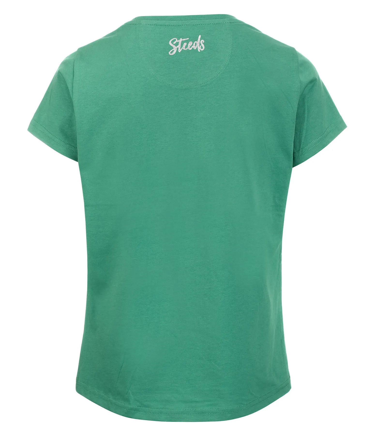 Joli t-shirt à col rond. Matière douce. Imprimé coeur et cheval scintillant à l’avant. Logo STEEDS au dos. 95 % coton, 5 % élasthanne.