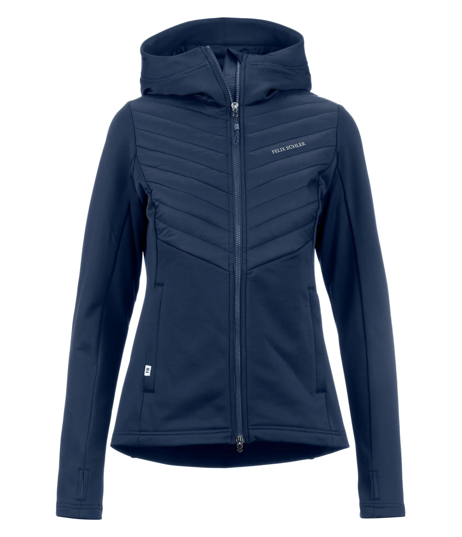 Combinaison technique en matière légèrement rembourrée sur le torse et le haut du dos, et en stretch Performance chaud assurant une liberté de mouvement optimale et un ajustement parfait. Fermeture à glissière double sens avec sous-patte et protège-menton, 2 poches zippées devant, passe-pouce. Imprimé Felix Bühler. Tissu torse et haut du dos 100 % polyester ; tissu stretch 95 % polyester, 5 % élasthanne.