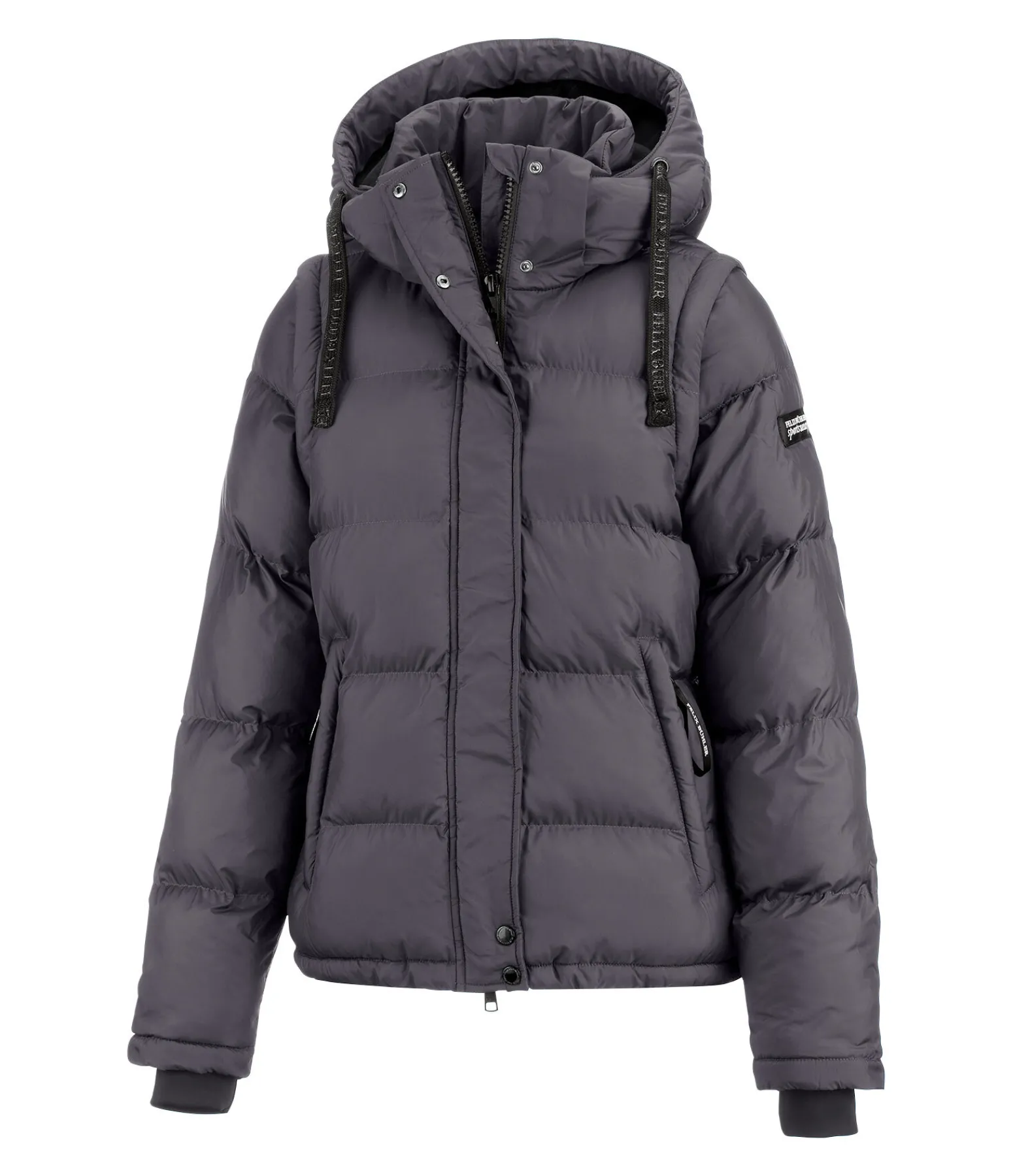 Une veste et un gilet en une seule pièce ! Veste d’équitation chaude avec manches amovibles zippées. Garnissage doux imitation duvet. Col montant. Capuche doublée en polaire, amovible et ajustable par cordon de serrage. Bouton-pression pour fixer la capuche dans le dos. Fermeture à glissière double sens dissimulée. 2 poches avant doublées en polaire, zippées et dissimulées. Badge Felix Bühler sur le bras. Finition en bord-côte sur le bas des manches. Taille ajustable par cordon de serrage. 100 % polyester.