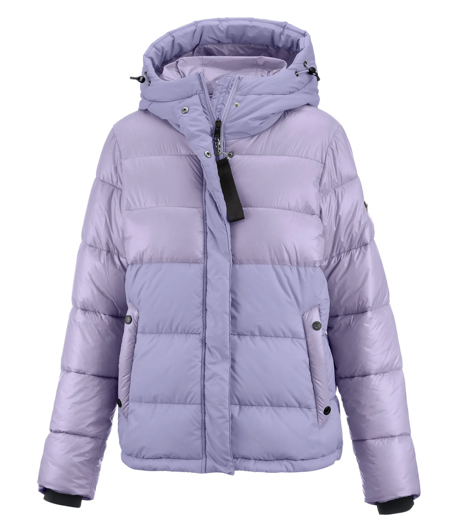 Veste matelassée légère et chaude avec capuche haute réglable. Garnissage doux imitation duvet. Nylon scintillant sur le haut et les manches de la veste. Fermeture à glissière bidirectionnelle dissimulée. 2 poches avant zippées et dissimulées. Bas des manches élastiqué et coupe-vent. Badge Felix Bühler sur le bras. Ourlet ajustable par cordon de serrage. 100 % polyester, partie brillante 100 % nylon.