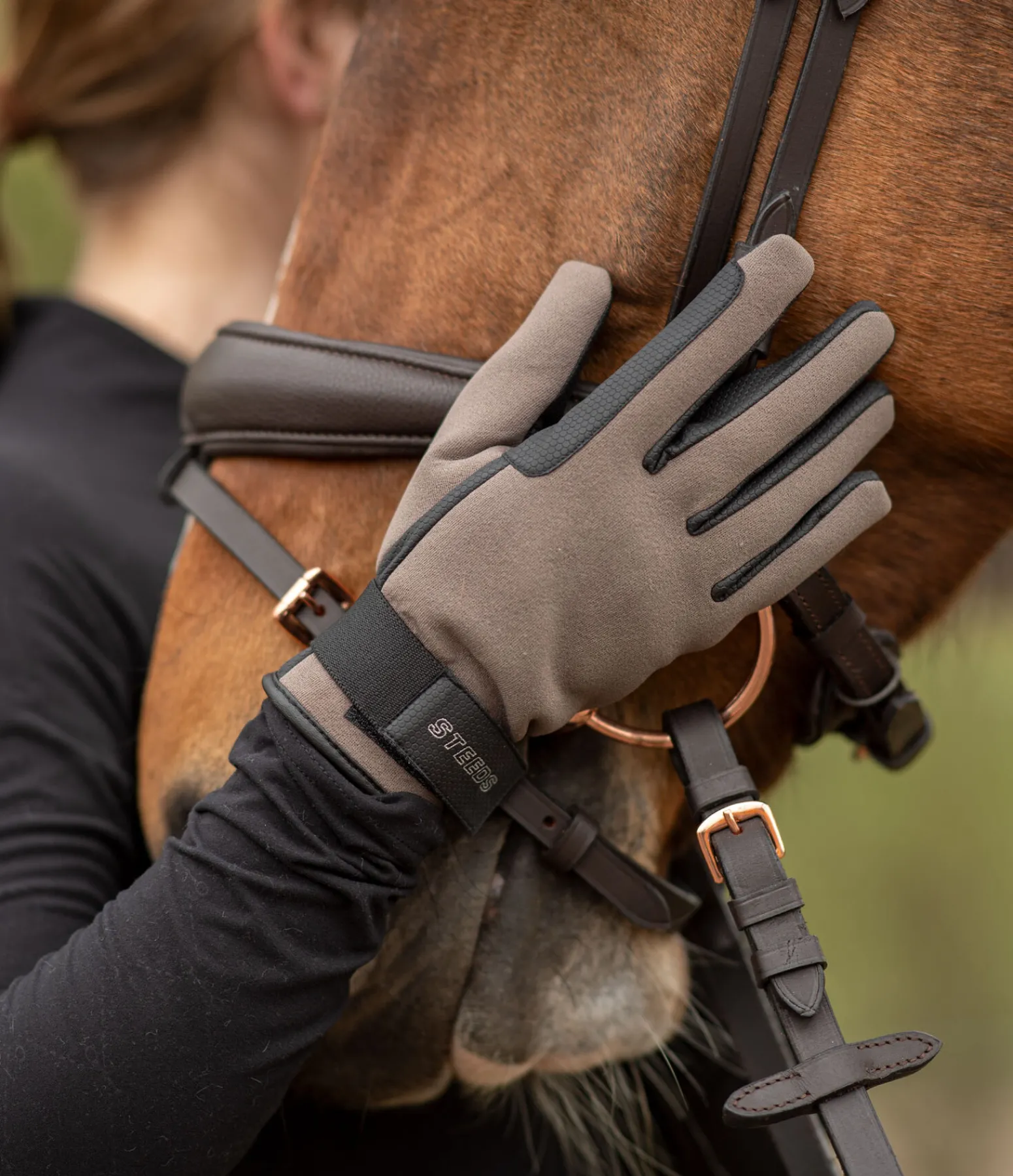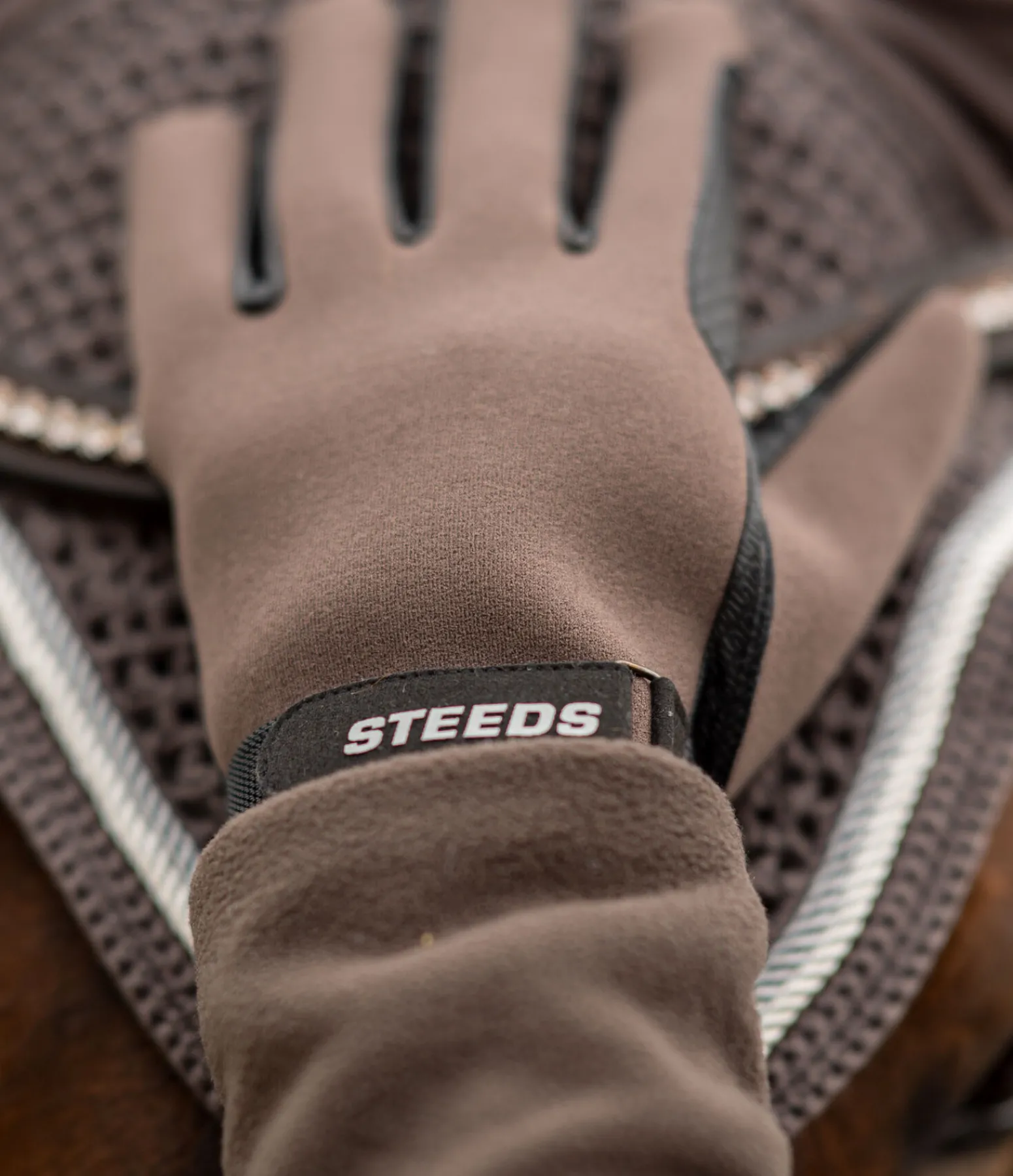 Gants déperlants et coupe-vent en matière softshell extensible. Avec doublure Thinsulate chaude, poignets réglables par patte auto-agrippante et renforts au passage de rênes. Dessus 100 % polyester. Paume 100 % polyuréthane. Doublure 35 % polyester, 65 % polyoléfine.