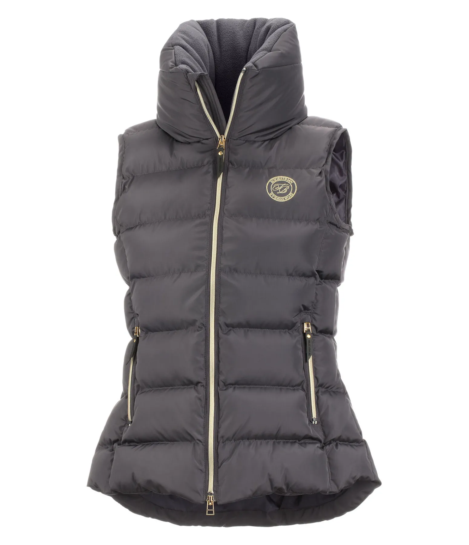 Élégant gilet d’équitation classique avec large col extra haut, chaud et doublé de polaire douce. Coupe plus longue à l’arrière. Rembourrage douillet, fermeture à glissière double sens avec sous-patte et protège-menton, 2 poches zippées devant et 1 poche intérieure zippée. Broderie Felix Bühler sur la poitrine et le col. 100 % polyester.