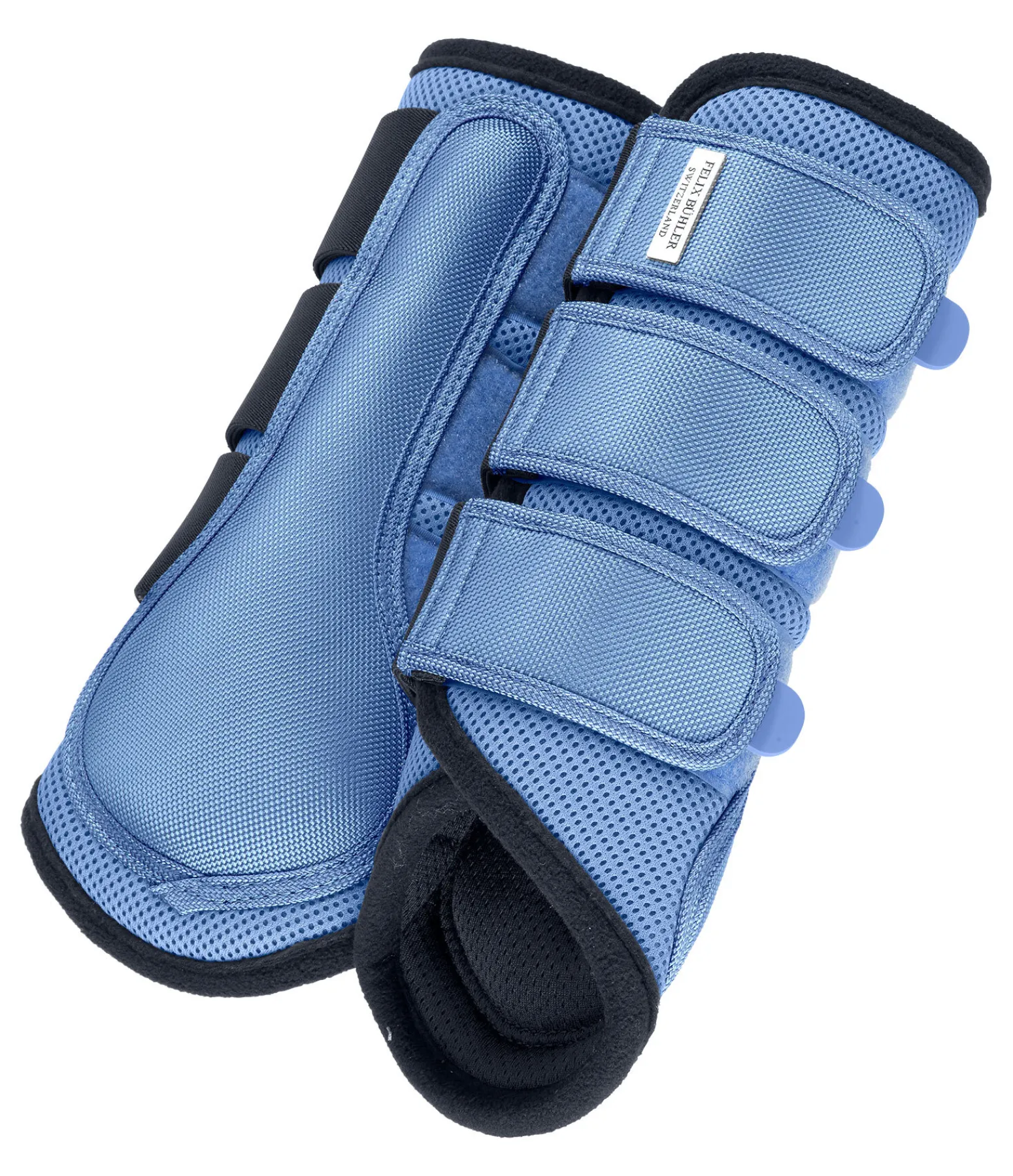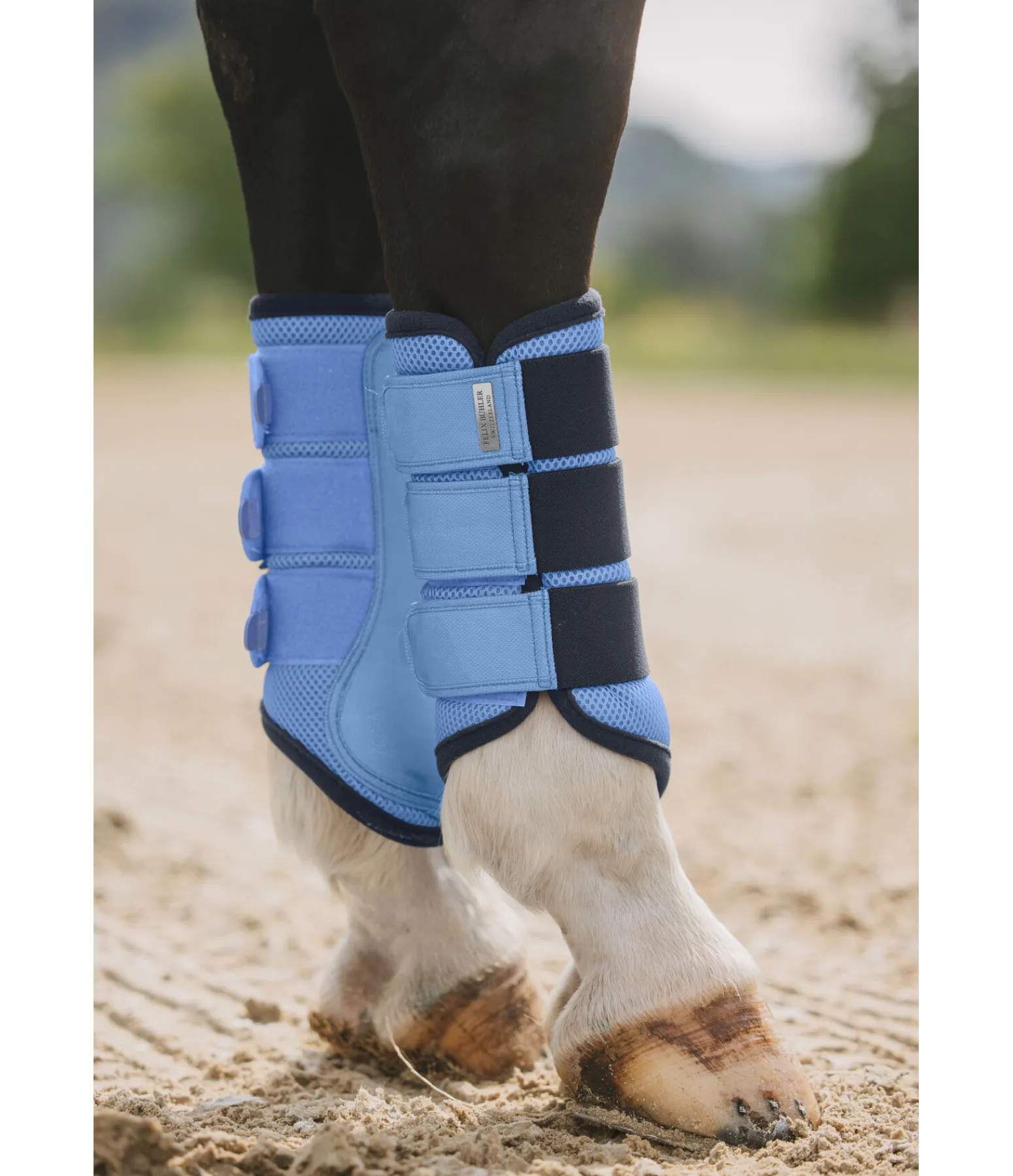 Guêtres souples pour postérieurs. Mesh extrêmement respirant permettant une circulation optimale de l’air. Pattes auto-agrippante élastiquées pour un ajustement parfait. Petit plaque métallique avec logo. Renfort sur la face intérieure pour une protection supplémentaire contre les chocs. Bordure en polaire pour éviter les frottements. 100 % polyester. Vendues par paires.
