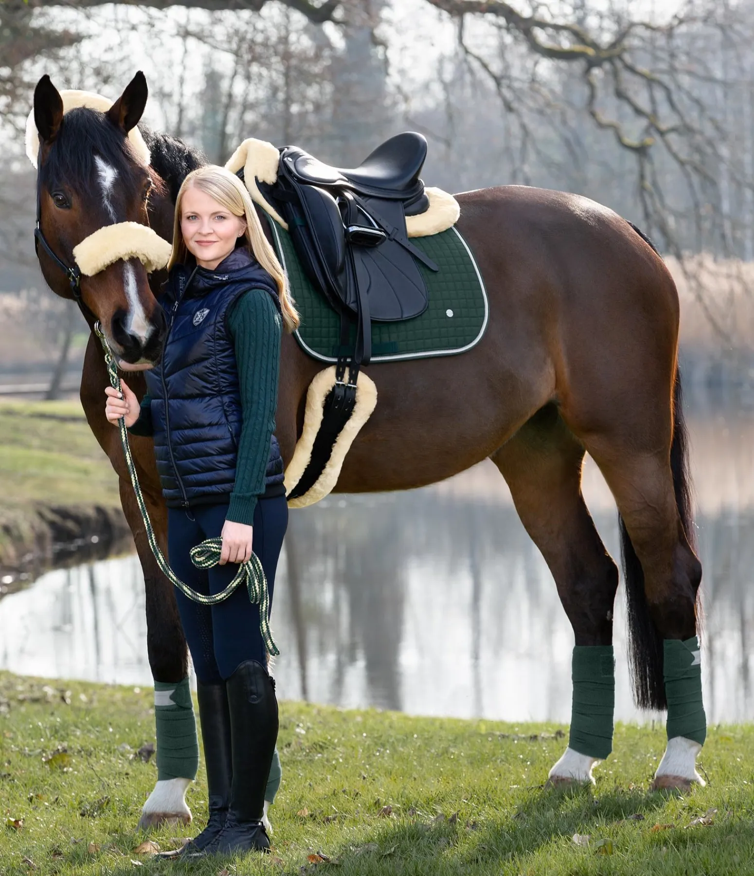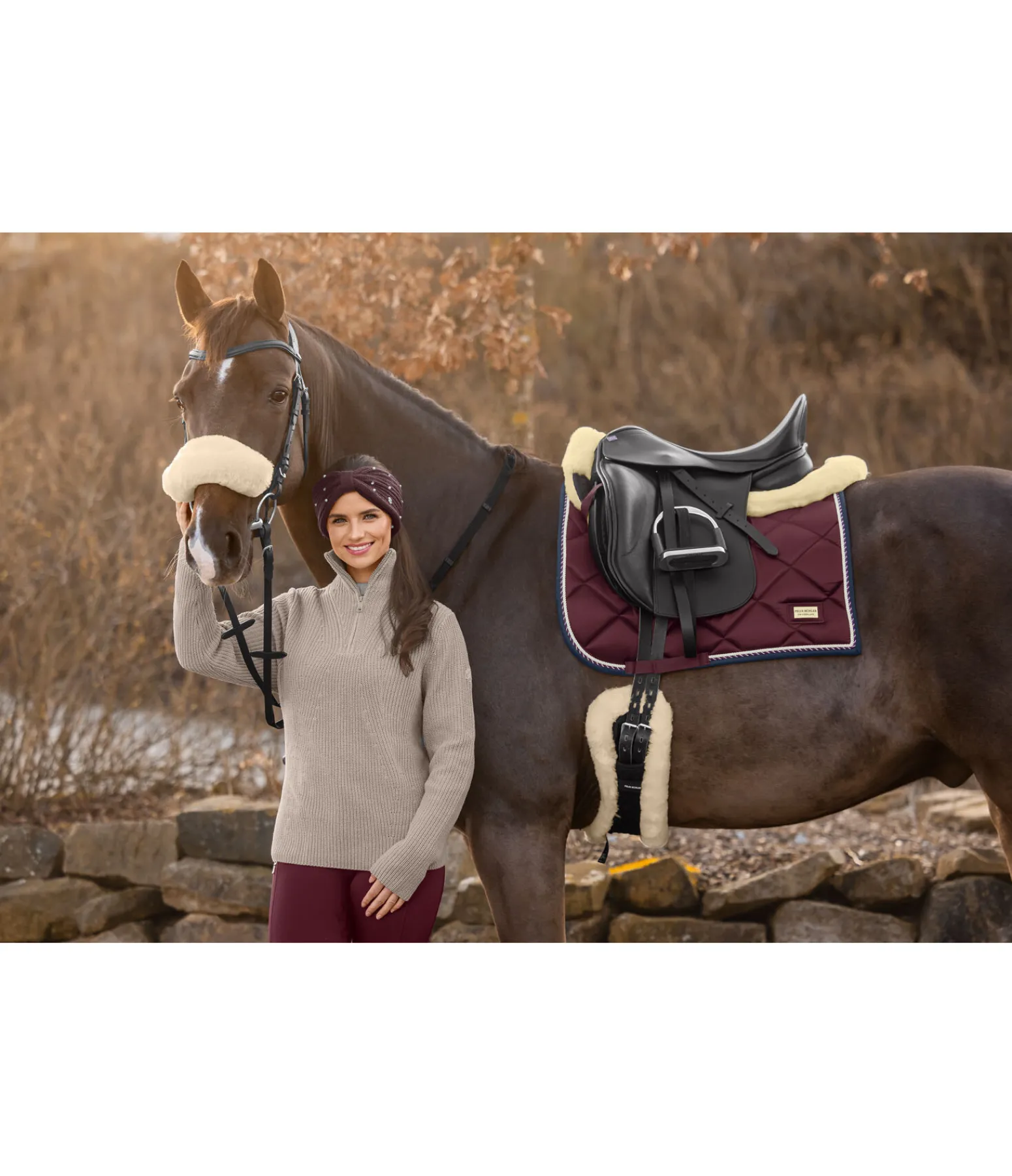 Amortisseur bordé et entièrement doublé de fourrure d’agneau à tannage médical. Le long de la colonne vertébrale, la fourrure d’agneau est plus courte pour permettre un mouvement optimal des vertèbres. Passants de contre-sanglon avec patte auto-agrippante. Longueur de dos 64 cm. Fourrure 100 % agneau mérinos, tissu matelassé : 70 % polyester, 30 % coton et rembourrage 100 % polyester. Lavable à 30 degrés programme d’entretien de la laine. Laver uniquement avec une lessive spéciale fourrure d’agneau. Ne pas mettre au sèche-linge.