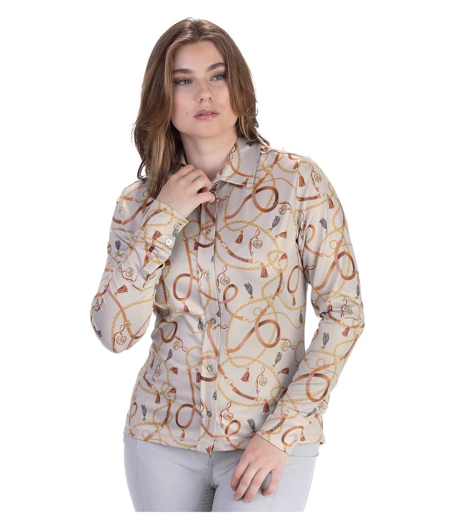 Chemise d’équitation chic et fonctionnelle. Matière respirante à séchage rapide. Imprimé classique all-over. Patte de boutonnage. Poignets boutonnés. 85 % polyester, 15 % élasthanne.