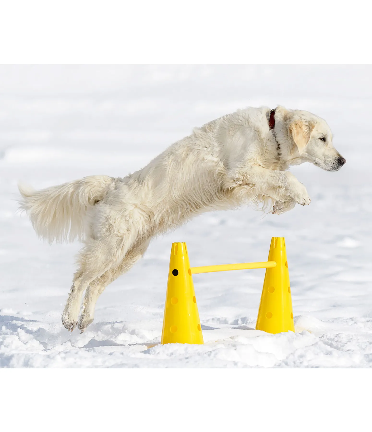 Cônes résistants. Lignes de trois trous. Selon l’utilisation souhaitée, il est possible d’y glisser une barre ou un cerceau. Hauteur 40 cm. Vendus par 2.