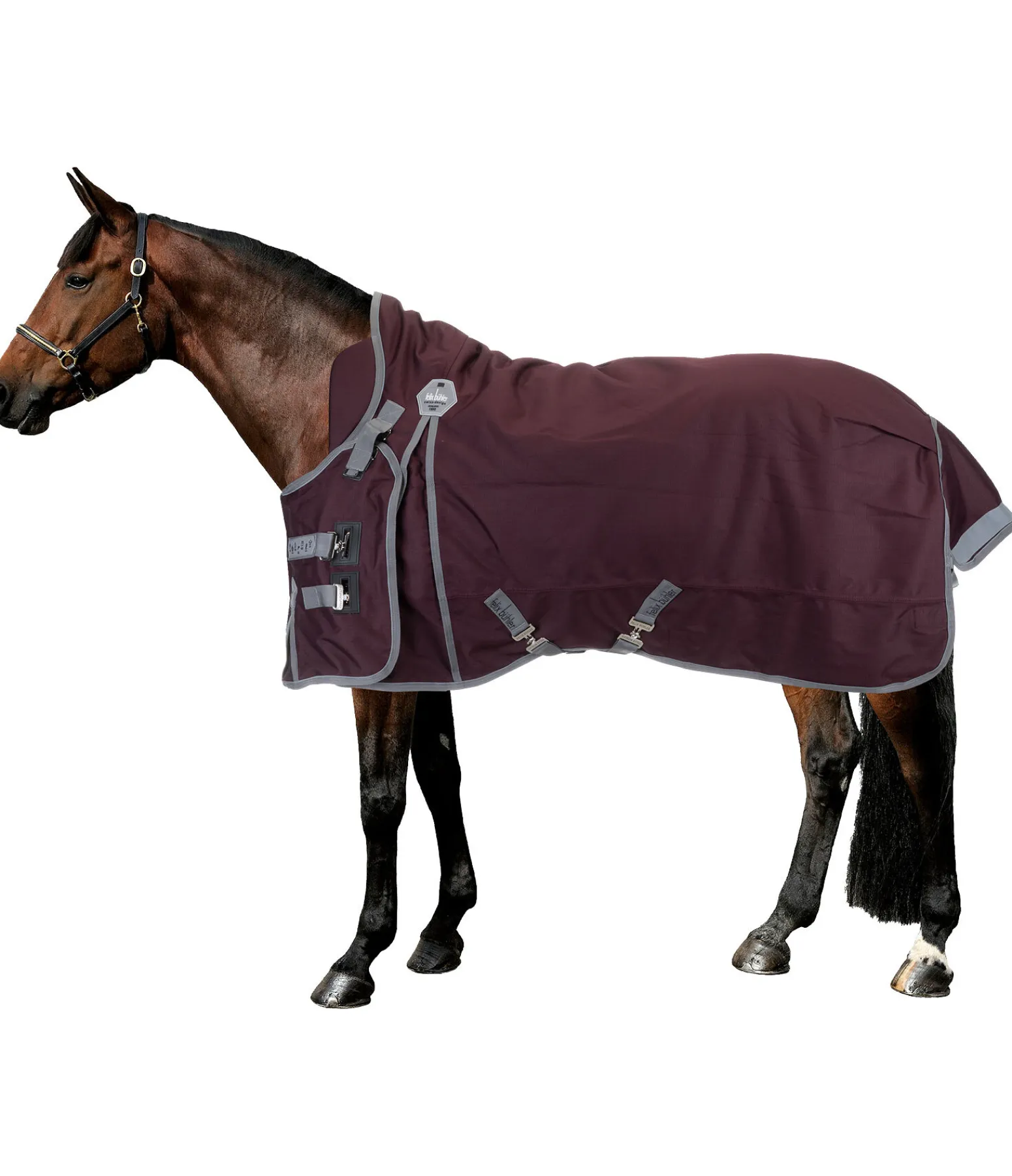 Couverture d’extérieur innovante particulièrement résistante à la déchirure en matériau de 1.200 deniers, imperméable (5.000 mm). Léger garnissage. Fermeture avec rabat latéral en trois points grâce aux crochets en T et patte auto-agrippante supplémentaire. La zone du poitrail est ainsi exempte de boucles et de crochets à l´avant, ce qui est un plus en matière de sécurité. Par exemple, la couverture ne peut pas se prendre dans les mailles du filet à foin. Rembourrage au garrot et double plis d’aisance au niveau des épaules et à l’avant pour une plus grande liberté de mouvement. Insert confortable en Softshell extensible et déperlant à l’avant, qui évite les frottements et permet de baisser la tête sans être gêné. Zone des épaules rembourrée permettant une répartition optimale des points de pression et évitant les irritations dues aux frottements. Passepoil réfléchissant sur tout le pourtour et rabat de queue avec bandes réfléchissantes. Doublure intérieure lisse et agréable pour la robe. Sursangles croisées et courroie de queue réglable en longueur. 100 % polyester