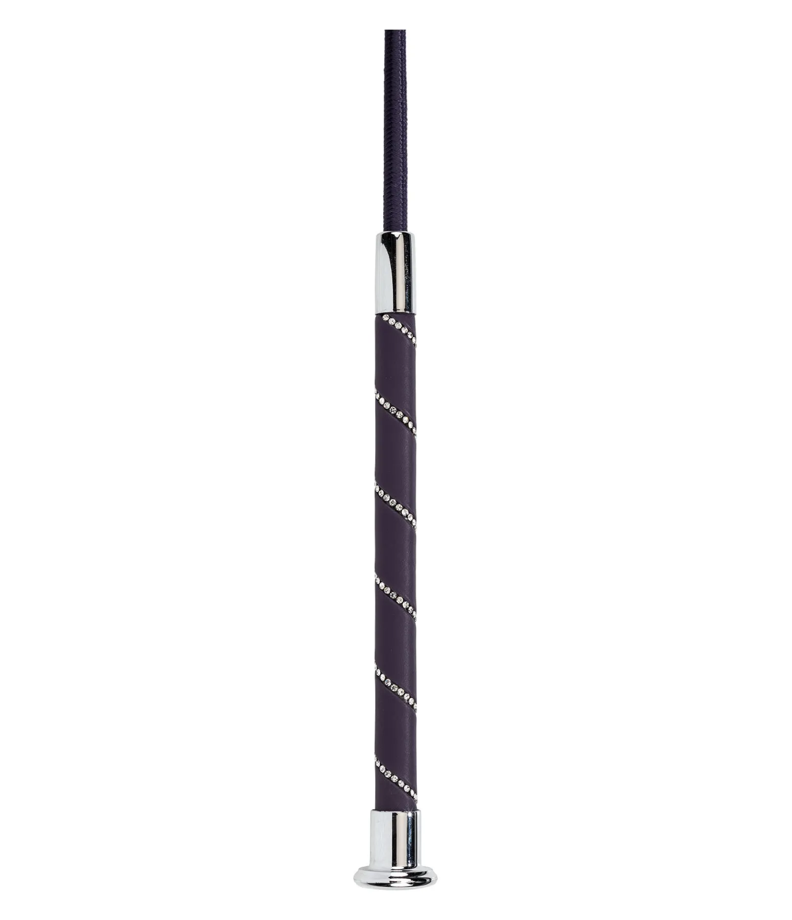 Cravache de dressage tendance avec poignée pailletée ornée de strass. Tiige en fibre de verre recouverte de nylon.