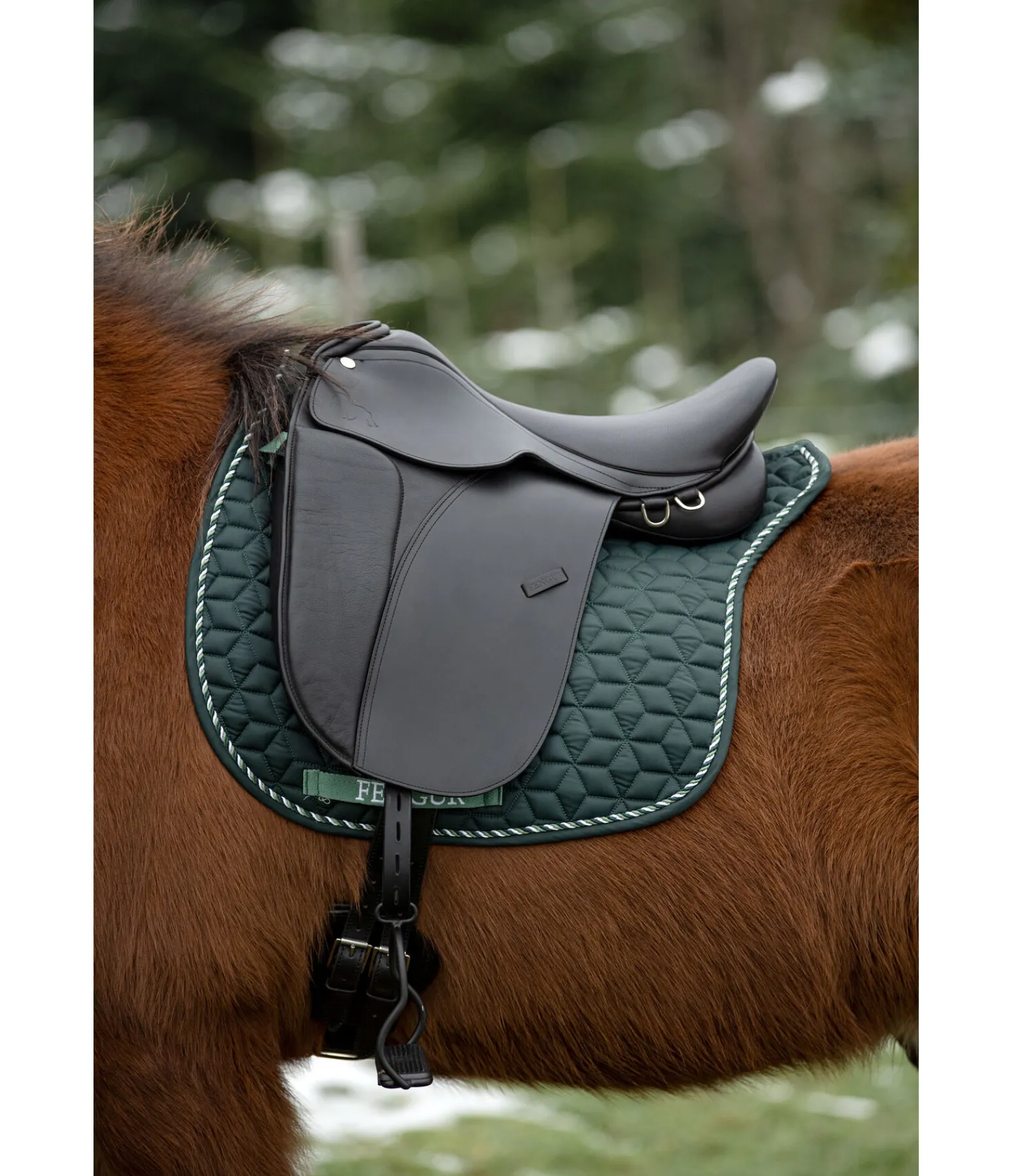 Étriers de sécurité en S en acier inoxydable. L’oeil tourné à 90° et la forme en S des branches permettent au cavalier de se dégager rapidement des étriers en cas de chute. Revêtement par poudre noir et semelles d’étriers en caoutchouc antidérapantes.