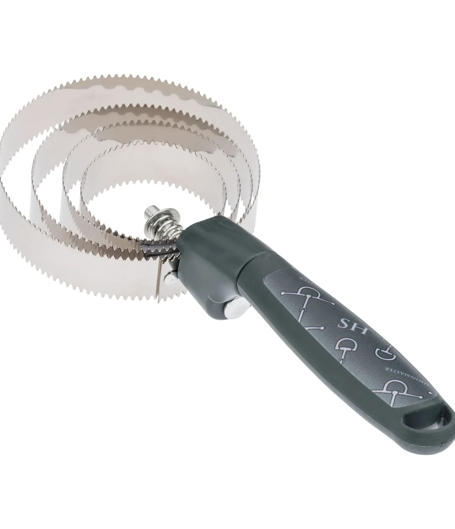 Étrille américaine avec élégant imprimé all-over au motif de mors. En plastique avec anneaux en aluminium. 25 x 11 cm.