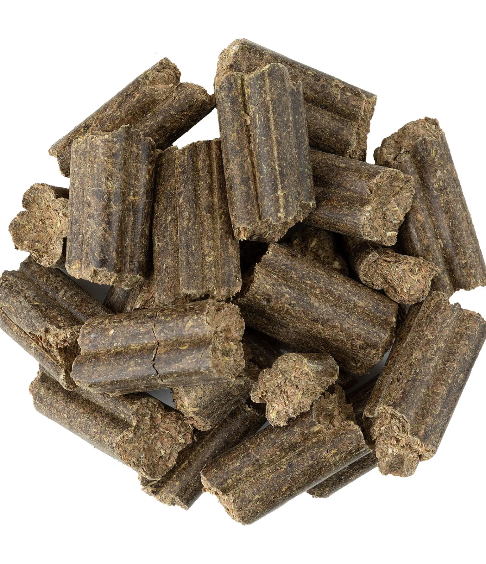 Composition : Farine verte des prés, marc de pomme, feuilles de noisette (5 %), oxyde de magnésium, mélasse de betterave sucrière, huile végétale (huile de tournesol, huile de colza, huile de soja).