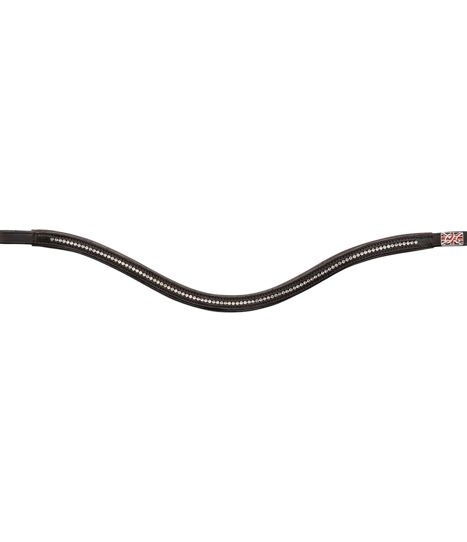 Élégant frontal vague en cuir avec doublure douce en cuir véritable. Rangée de petits strass blancs. Cuir gras particulièrement flexible. Parfaitement assorti aux autres articles de la série CLARIDGE HOUSE Mix & Match PRO. En combinant les articles de la série CLARIDGE HOUSE Mix & Match PRO, créer le bridon de vos rêves.