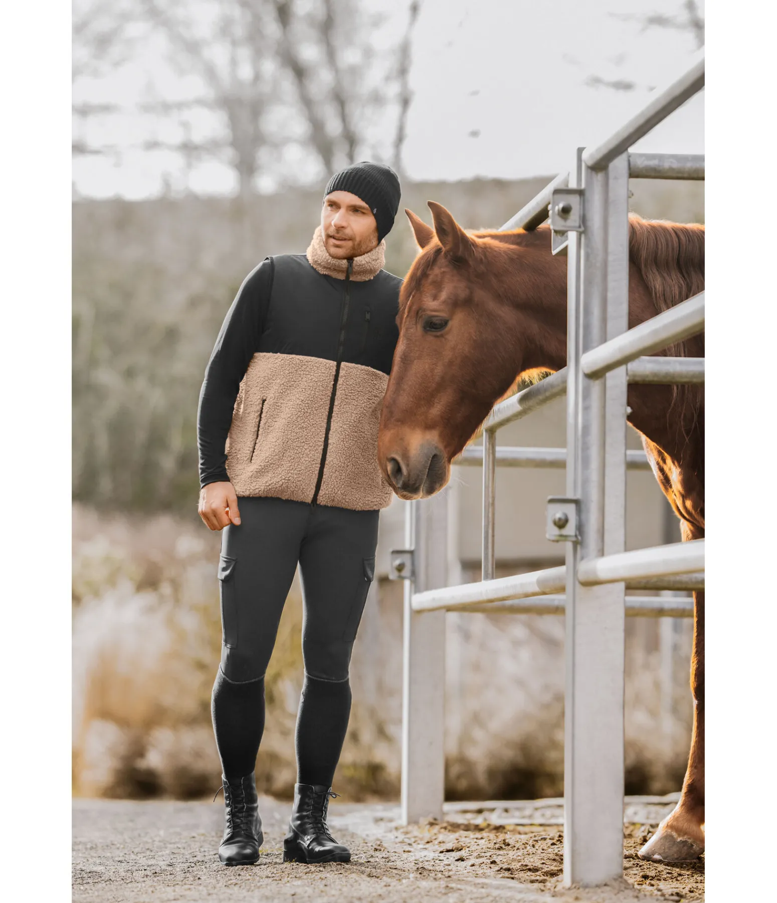 Gilet douillet en polaire Teddy douce avec col montant. Inserts en softshell déperlant et coupe-vent à l’avant et à l’arrière. Fermeture à glissière double sens, 2 poches zippées devant. 100 % polyester.