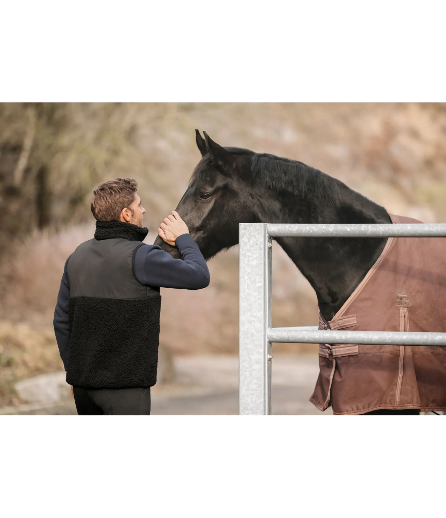 Gilet douillet en polaire Teddy douce avec col montant. Inserts en softshell déperlant et coupe-vent à l’avant et à l’arrière. Fermeture à glissière double sens, 2 poches zippées devant. 100 % polyester.