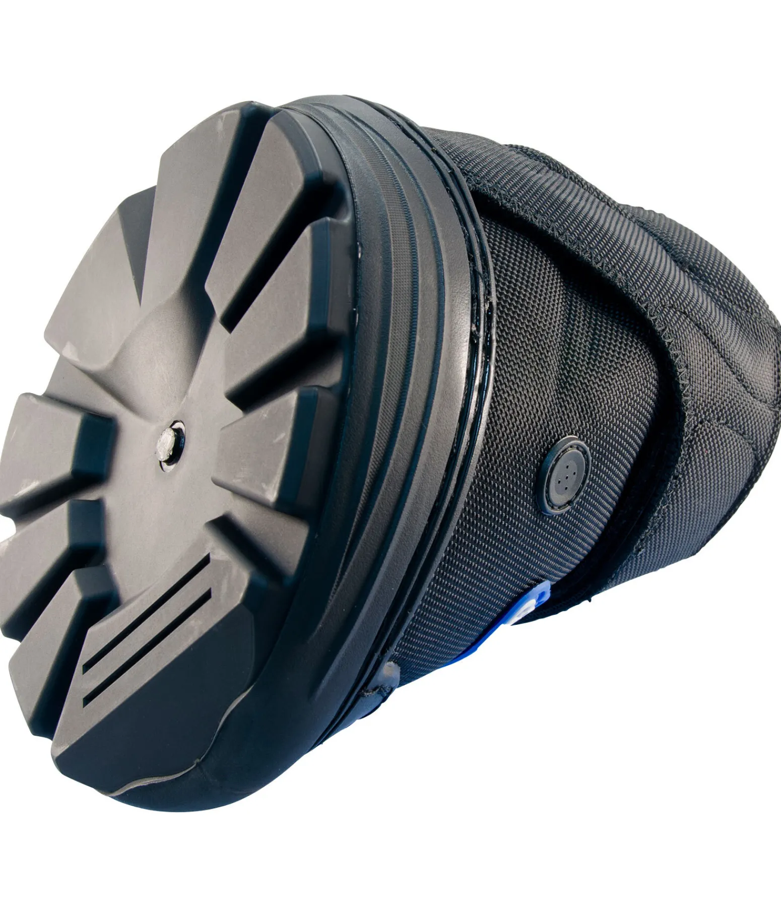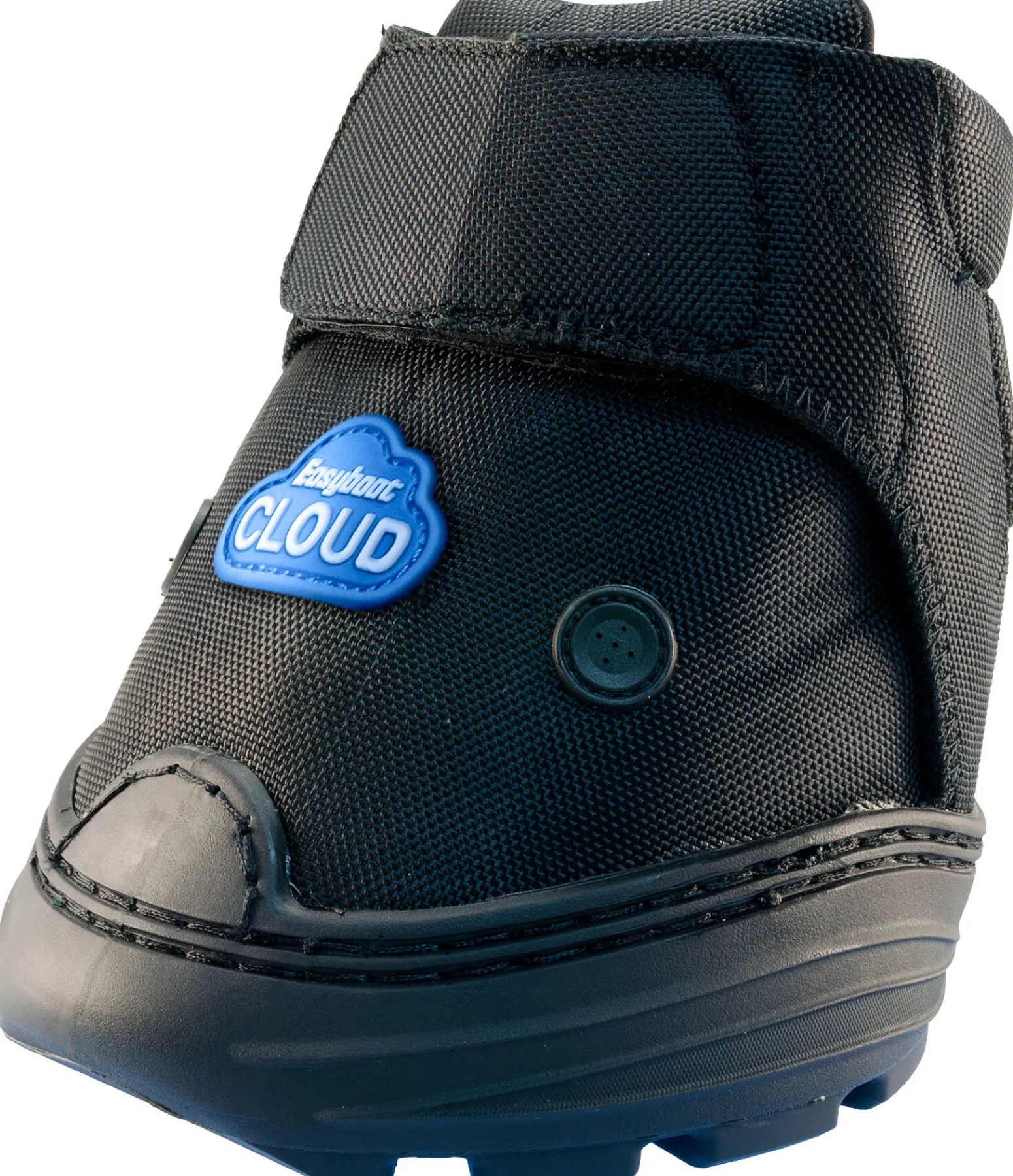 Hipposandale vétérinaire ou thérapeutique pour les chevaux aux sabots sensibles ou atteints de fourbure ou d’abcès. La semelle en mousse EVA fournie permet de rehausser le talon afin de soulager la pression sur la fourchette (écart de 15 mm : hauteur de 10 mm à l’avant et 25 mm à l’arrière). Autre option : insérer une semelle de confort plate EasyCare (431 360 ou 431 361 à acheter séparément). L’hipposandale Easyboot Cloud peut aussi être utilisée comme protection lors du transport. Matière extérieure en tissu doux, résistant et facile à nettoyer. Semelle crantée en caoutchouc résistant à l’abrasion. Vendue à l’unité.