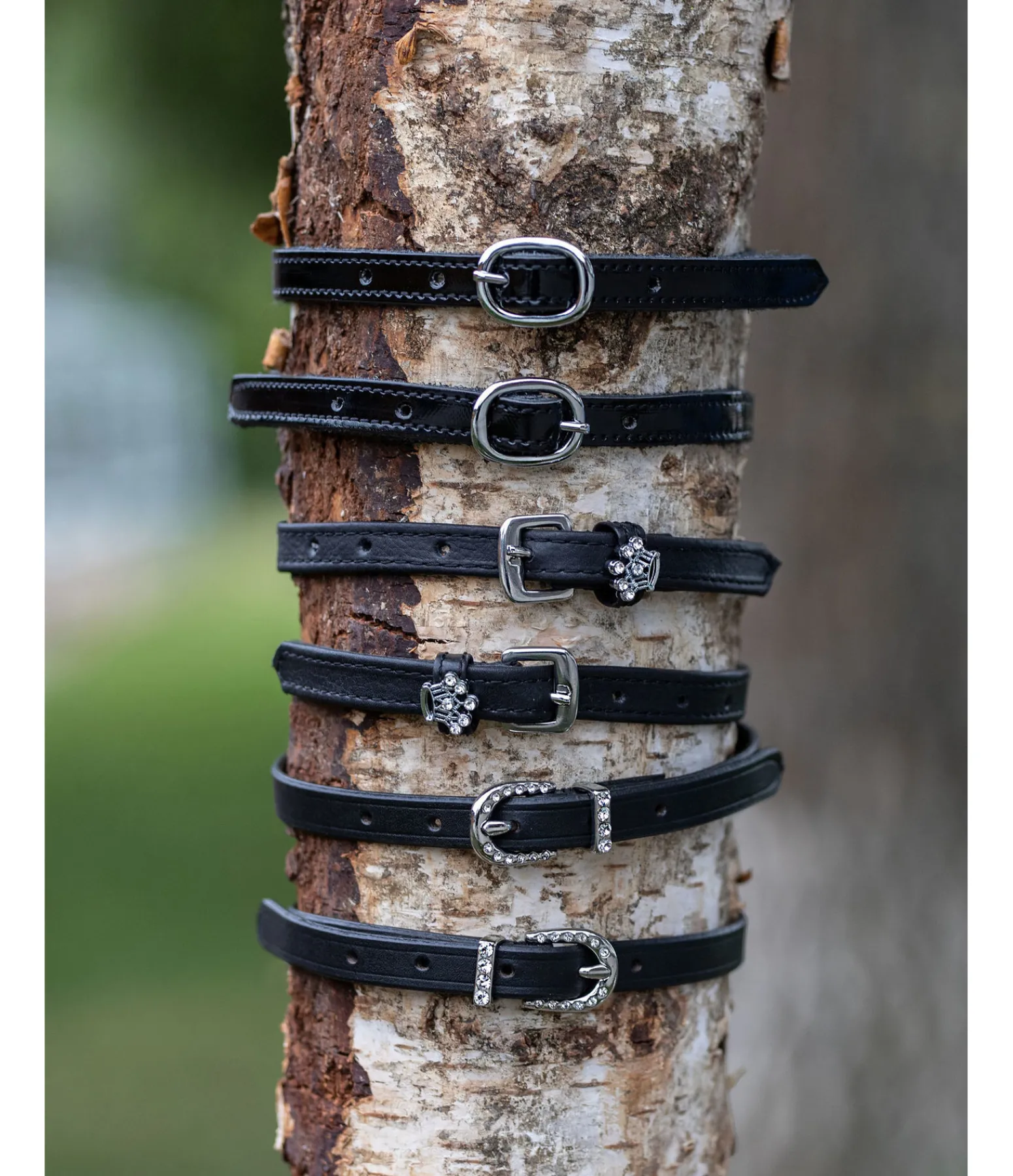 Lanières d’éperons élégantes. Effet vernis.